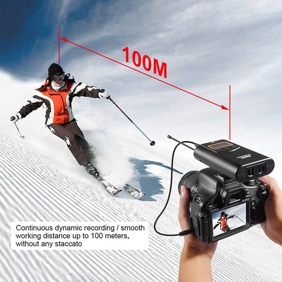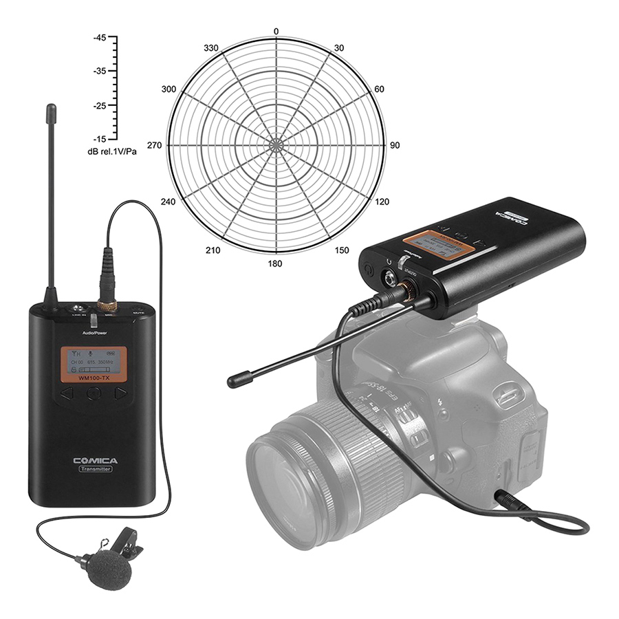 Mua tại Tiktok- Micro Không Dây Cho Máy Ảnh, Máy Quay Comica CVM-WM100 sử dụng microphone omni-directional và có độ nhạy cao, cho khả năng thu âm đa hướng, âm thu to và rõ.