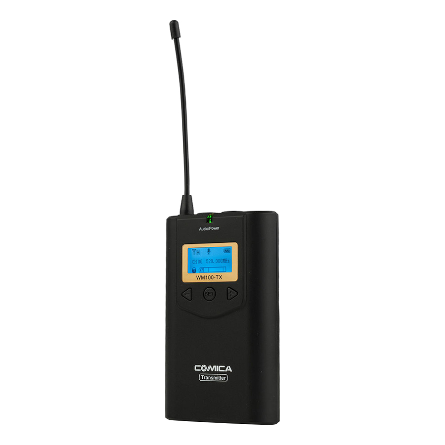 - Có khả năng kết nối và ghi âm, quay phim với các loại smartphone của Samsung, Iphone, Huawei, LG bằng cáp chuyển Comica TRS to TRRS (không đi kèm trong bộ sản phẩm). Thông số kỹ thuật Transmitter/ Receiver Channels 48 Signal / Noise >65dB Frequency Range 520~534.1MHz Transmitting Power 10mw /30mw Receiving Sensitivity -95dBm Stray Radiation < -60dBc Sound Delay <20ms Audio Distortion <0.5% Audio Input 3.5mm Port Supported Battery AA Batteriesx2pcs Size 111.5 6525.3mm