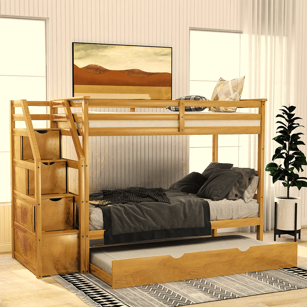 Giường tầng không chỉ giúp tiết kiệm không gian, mà còn là thế giới riêng của các bé. Giường tầng thang hộp XK Newport được thiết kế tối giản với 2 tầng có kích thước bằng nhau, thang rời tích hợp hộc đựng đồ tiện lợi. Khoảng cách giữa 2 tầng rộng rãi không sợ đụng đầu, kể cả với người lớn. Chất liệu gỗ thông xẻ sấy nhập khẩu được gia công tỉ mỉ, kết cấu chắc chắn, giúp các bé vui chơi an toàn và có những giấc ngủ ngon.