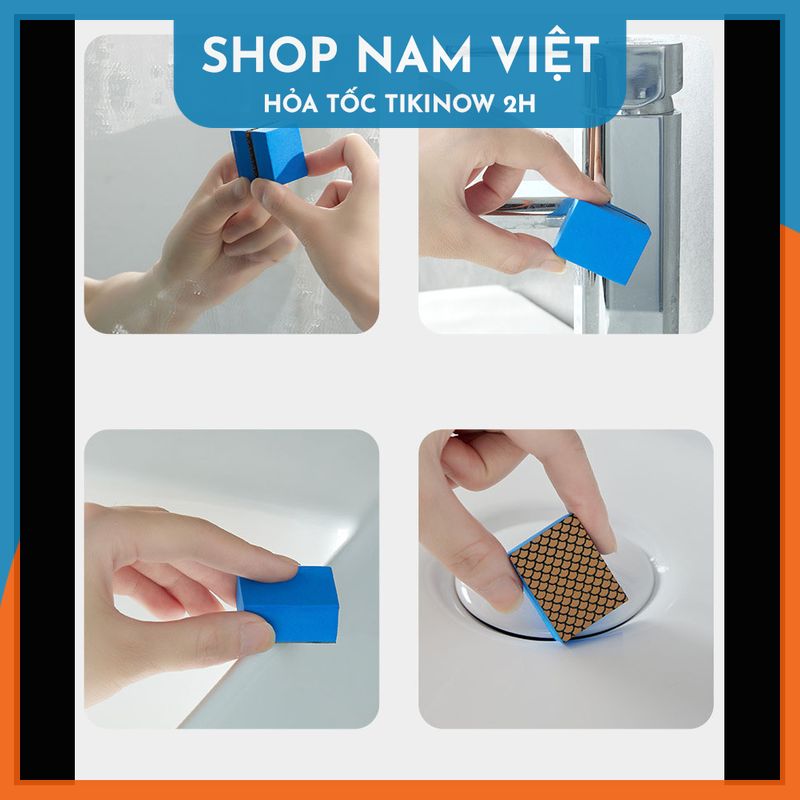 Mua tại TiktokĐóng gói: 1 miếng bọt biển kích 4.2 x 2.8 x 3.4cm ️ Tính năng Miếng bọt biển với một mặt nhám và một mặt mịn. Mặt nhám với tính năng tẩy sạch các cặn bẩn cứng như cặn canxi. Mặt mịn giúp đánh bóng mà không để lại vết. Dễ dàng vệ sinh đồ inox, đồ kính, thủy tinh sáng bóng. Không cần dùng chất tẩy rửa. ️ Thông số Kích thước: 4.2 x 3.8 x 3.4cm. Chất liệu: Nhựa epoxy polyester. ️ Cách sử dụng: Có thể rửa sạch để sử dụng nhiều lần.