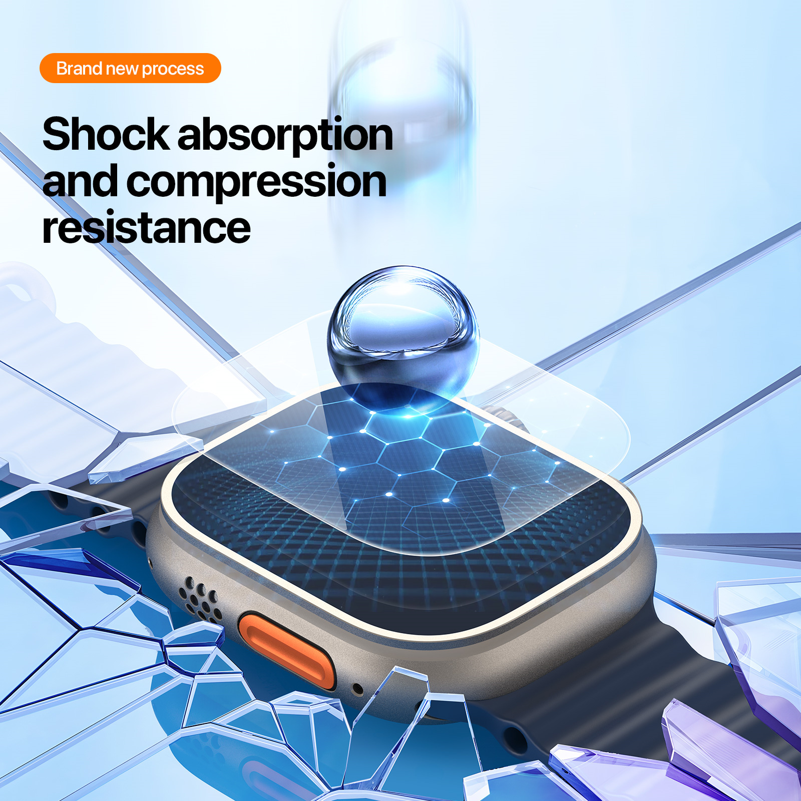 Thiết kế cao cấp, trong suốt Dán chống va đập cao cấp cho Apple Watch có thiết kế hiện đại, trong suốt, được sản xuất qua công nghệ hiện đại nên vừa vặn với mặt