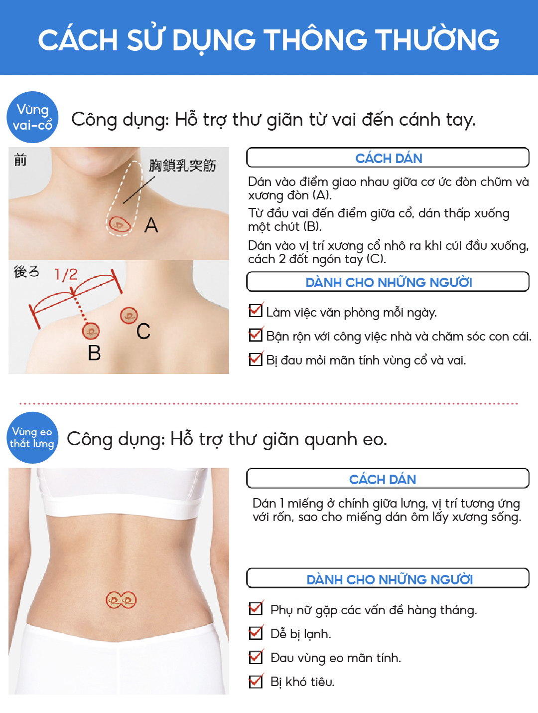- Băng dán cơ thể ưa thích của nhiều khách hàng trên toàn thế giới. Hướng dẫn bảo quản: bảo quản ở nơi sạch và khô ráo Lưu ý khi sử dụng :