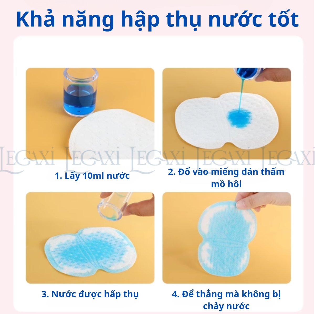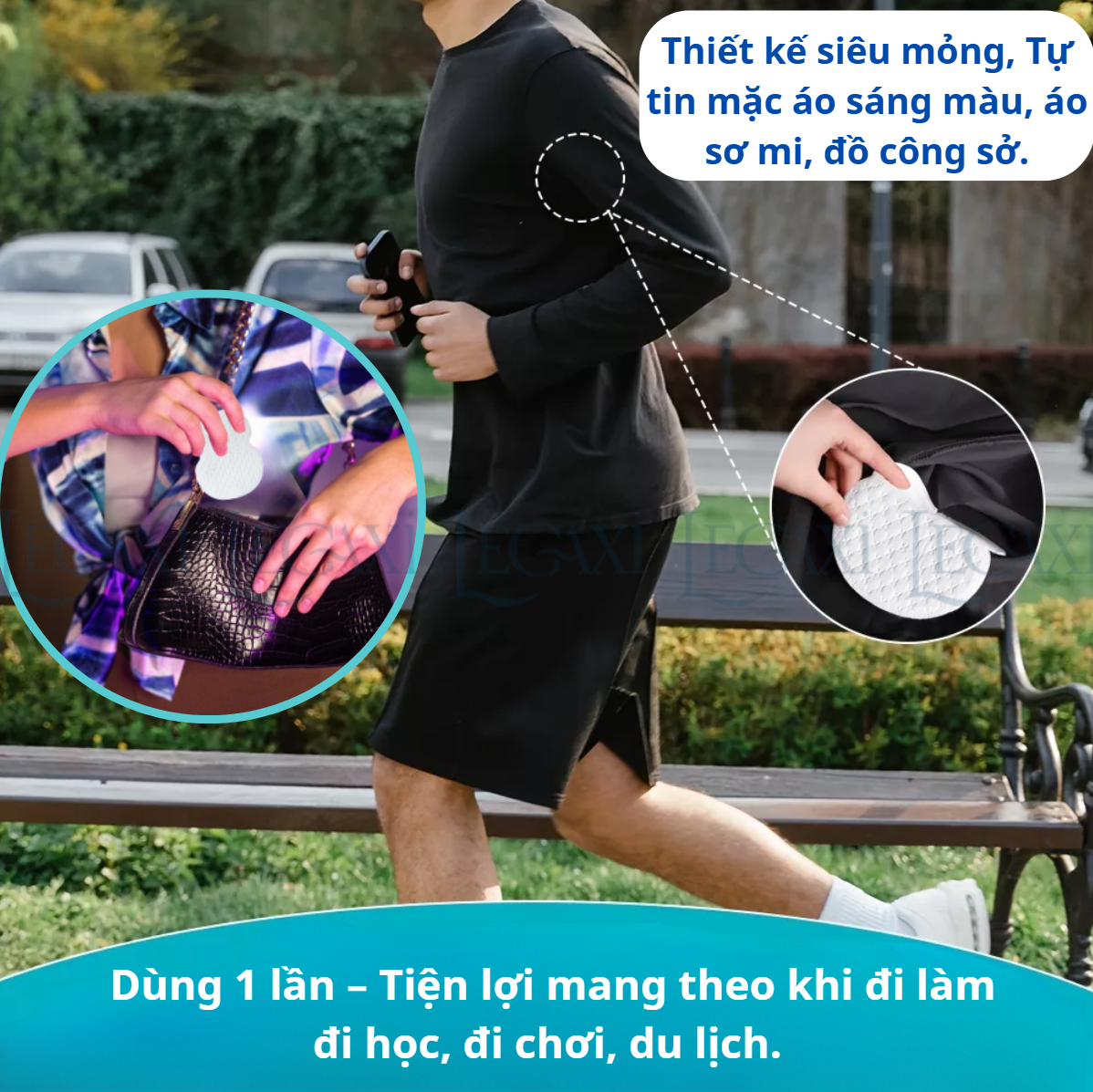 - Set 50 miếng: Gồm 5 túi mỗi túi có 10 miếng dán ĐẶC ĐIỂM NỔI BẬT: Thấm hút mồ hôi hiệu quả, không còn lo vùng nách ướt áo, ố vàng, mất tự tin. Chất liệu mềm mại, không gây kích ứng da, dán trực tiếp vào áo hoặc da tùy nhu cầu. Dùng 1 lần – tiện lợi mang theo khi đi làm, đi học, đi chơi, du lịch. Siêu mỏng – không lộ khi mặc áo – Tự tin mặc áo sáng màu, áo sơ mi, đồ công sở. THÔNG TIN SẢN PHẨM: Chất liệu: Vải không dệt, bông gòn Kích thước: 9.5 x 12.5 cm CÁCH SỬ DỤNG
