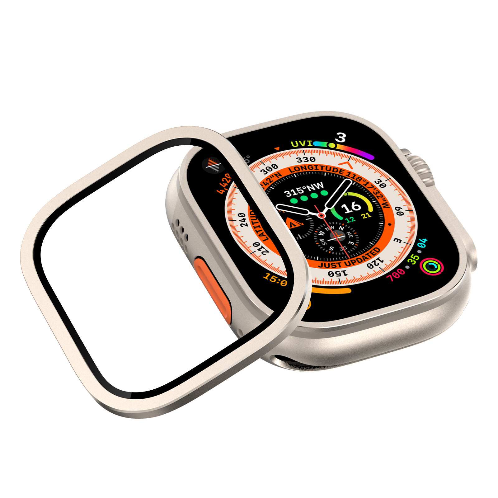 ✨Miếng Dán Màn Hình Kính Cường Lực Tích Hợp Khung Viền Kim Loại cho Apple Watch Ultra / Apple Watch Ultra 2 49mm - Hàng Chính Hãng