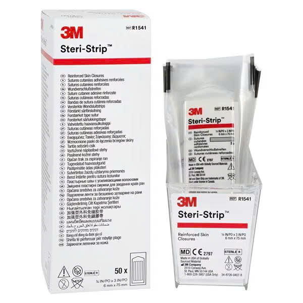 Mua tại TiktokMiếng dán thay chỉ khâu da Steri-Strip R1541 6mm x 75mm (1/4IN x 3IN) Băng dính vô trùng dùng thay thế chỉ khâu da để khép miệng các vết thương hoặc dán hỗ trợ sau cắt chỉ bỏ mối hoặc cắt chỉ toàn bộ. Băng cuốn kín vô trùng được làm bằng xốp, sợi không dệt phủ bởi chất kết dính không gây dị ứng, nhạy cảm với áp lực và được gia cố thêm bằng sợi polyester. THÔNG SỐ KỸ THUẬT Mã sản phẩm: R1541 Kích thước: 6mm x 75mm (1/4IN x 3IN) Thương hiệu: 3M Sản xuất tại: Mỹ Đơn vị: 3 Miếng/ Gói 50 Gói/ Hộp 4 Hộp/ Thùng ĐẶC ĐIỂM NỔI BẬT