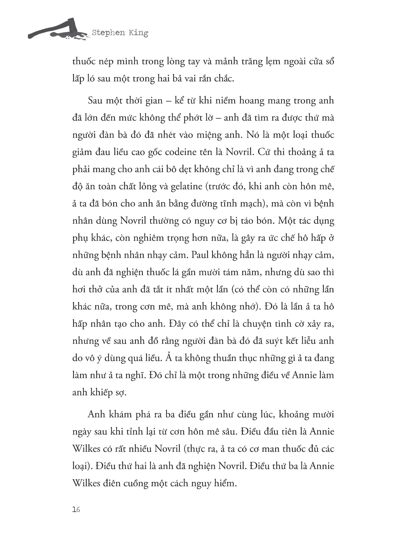 “Một bức chân dung ngột ngạt, trong đó một nhà văn nổi tiếng đã bị một ả điên, người tự xưng là fan hâm mộ số 1 của anh đẩy đến bờ vực cuồng loạn bởi đau đớn, thuốc men, sự giam cầm. Một tác phẩm ám ảnh đến từng con chữ.” - New York Times