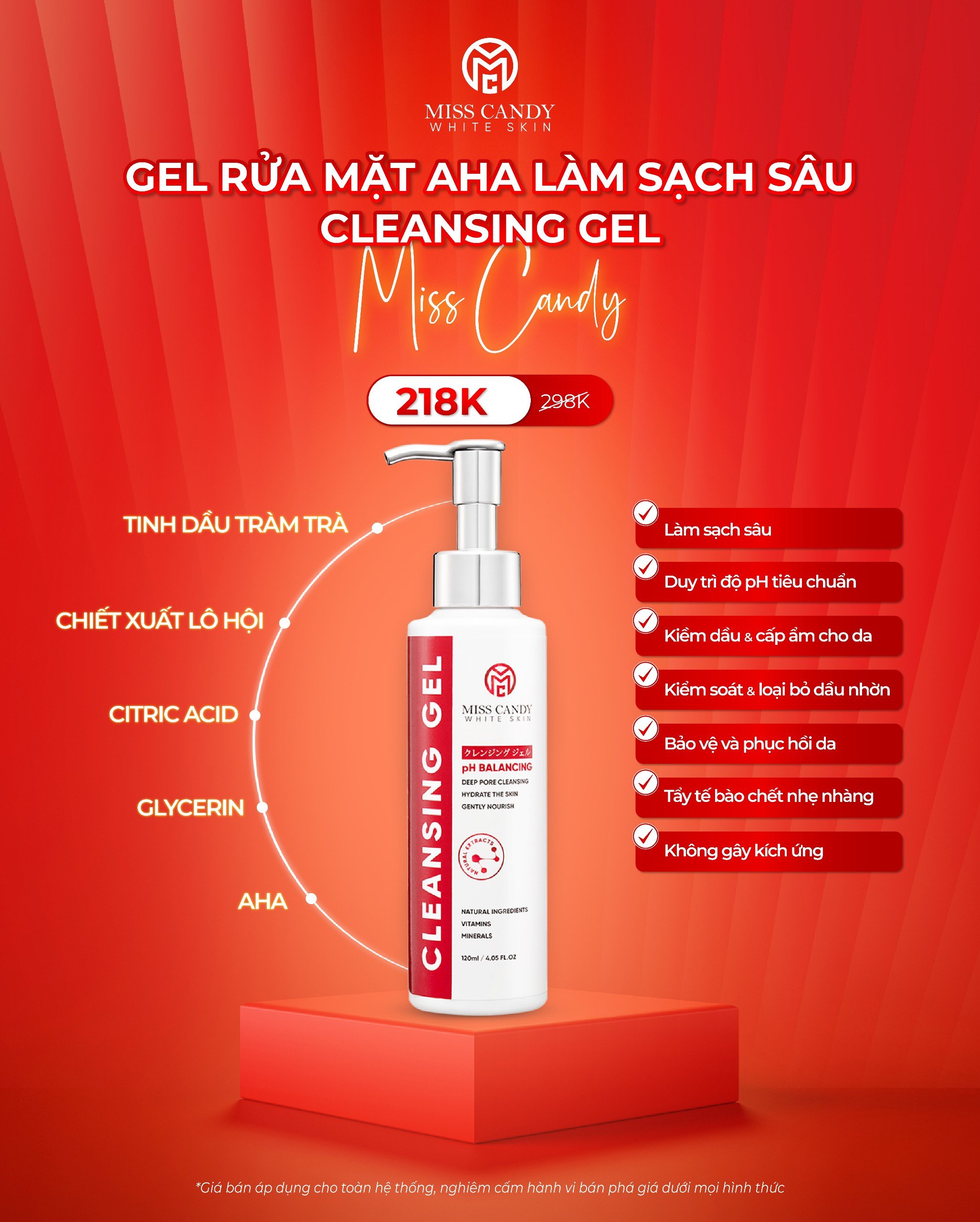 Mua tại Tiktok[MISS CANDY] Gel Rửa Mặt Dịu Nhẹ AHA Làm Sạch Sâu CLEANSING GEL MISS CANDY 120ml,Làm Sạch Bụi Bẩn,Giảm Nhờn,Ngừa Mụn & Cân Bằng Độ PH Cho Da - Gia Tuệ House THÔNG TIN SẢN PHẨM