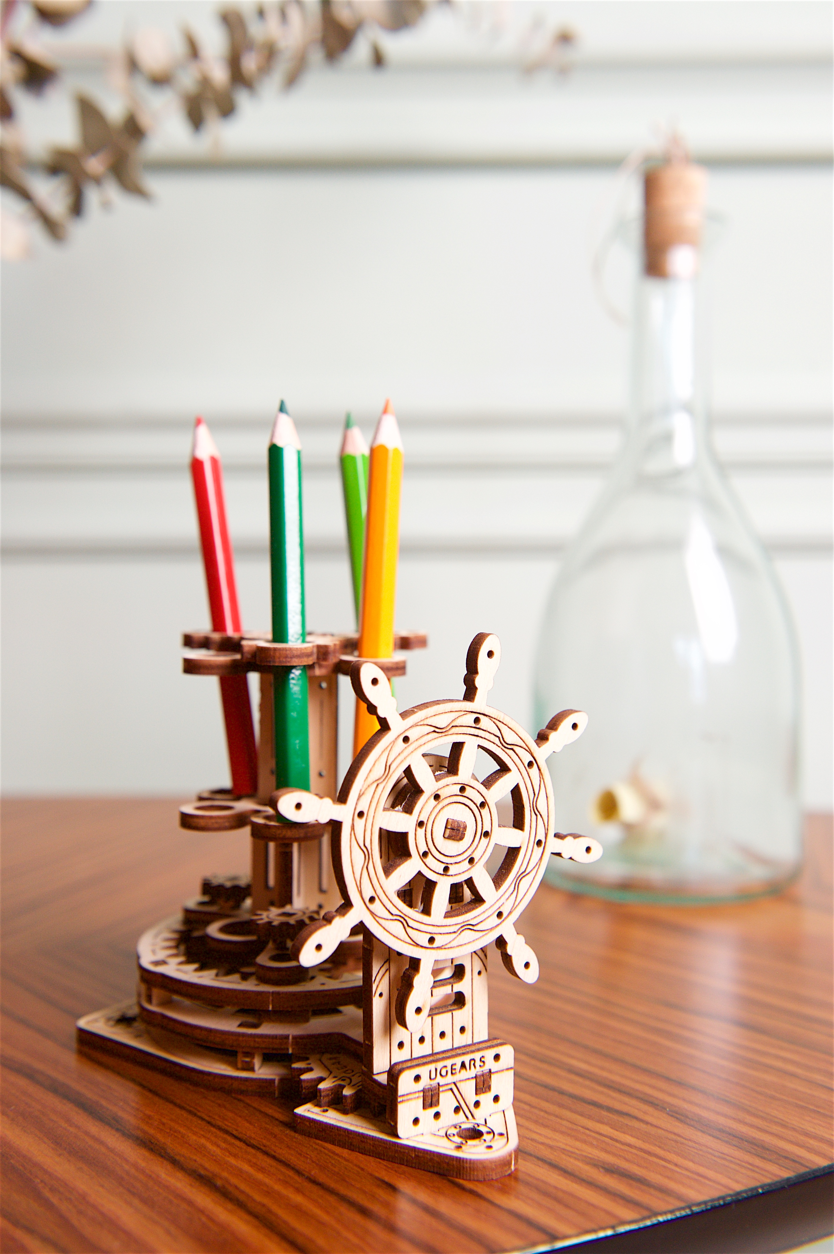 ✨Mô hình gỗ cơ khí - Ugears Wheel Organizer- Ống bút bánh lái, hàng chính hãng UGEARS, nhập khẩu nguyên bộ từ EU, mô hình lắp ráp 3D, DYI