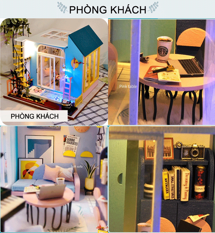 Nhà búp bê lắp ghép bằng gỗ có đèn lend sunshine Study