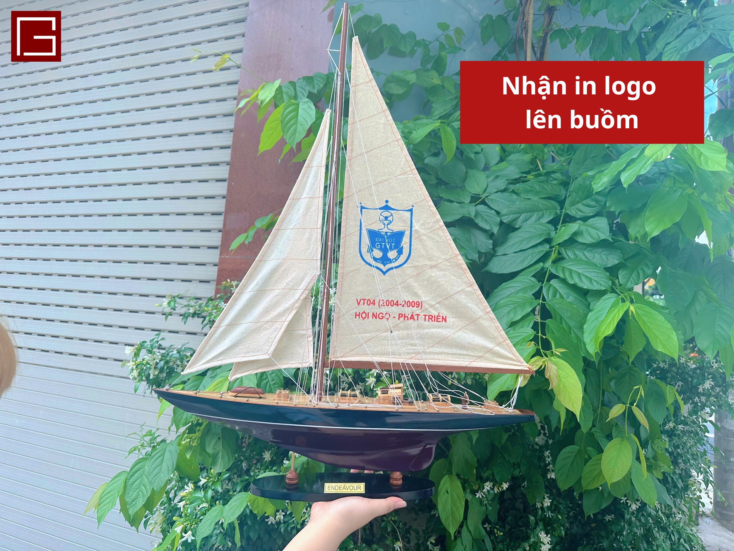 Mô hình thuyền gỗ phong thủy, thuyền buồm trang trí ENDEAVOUR PAINTED, thuyền gỗ trang trí hàng chính hãng