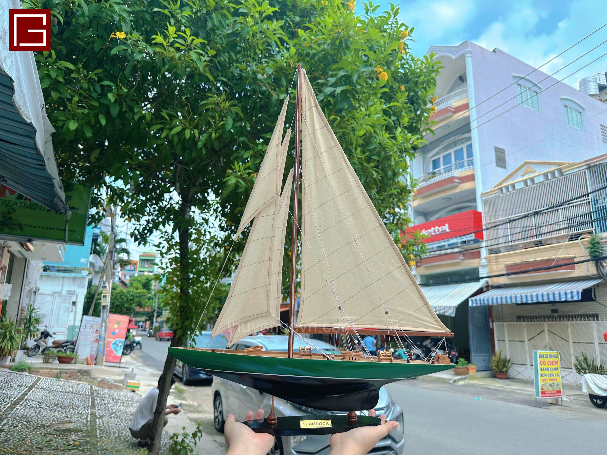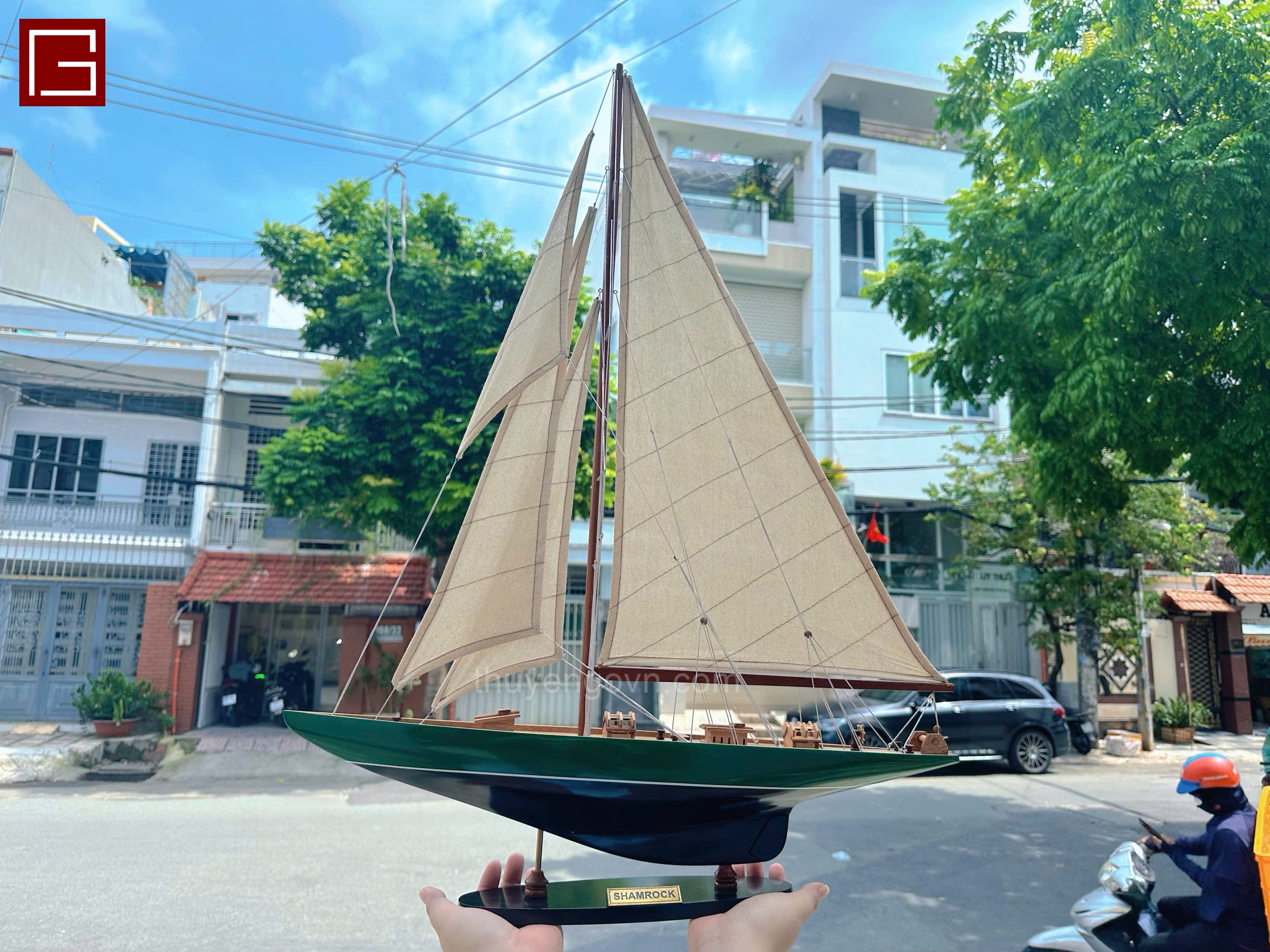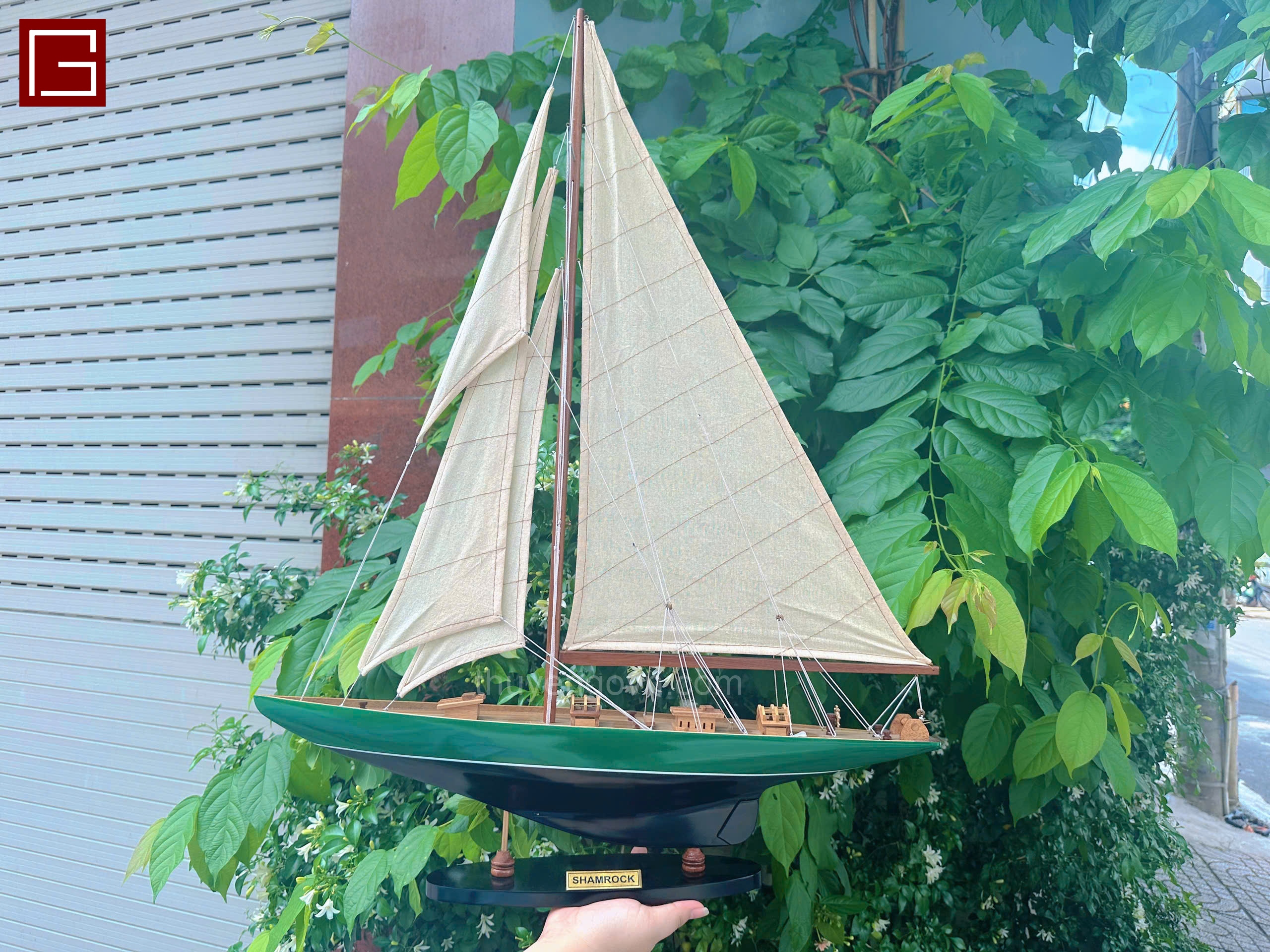 Mô hình thuyền gỗ phong thủy, thuyền buồm trang trí SHAMROCK PAINTED, thuyền gỗ trang trí hàng chính hãng