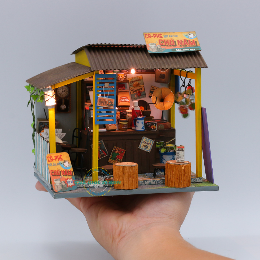 - SẢN PHẨM KHÔNG ÁP DỤNG ĐỔI TÊN BẢNG HIỆU GIÁ SẢN PHẨM CHƯA BAO GỒM THUẾ VAT, KHÁCH CẦN XUẤT VAT XIN VUI LÒNG LIÊN HỆ THẾ GIỚI TÍ HON QUA CHATBOX Mô Hình Gỗ DIY Sài Gòn Xưa Và Nay Thu Nhỏ - Cà Phe Đá - Mã SP: AD07 Chú Năm ơi cho con ly đen đá không đường!!! Không hiểu sao tôi vẫn chỉ thích ngồi những quán cà phê cóc ven đường. Những cái quán chỉ có một, hai cái bàn, vài cái ghế nhựa, chẳng xa hoa hiện đại, chẳng máy lạnh, sô pha, ấy vậy mà gần gũi, thoải mái vô cùng… Có lẽ cũng một phần là do ký ức, tôi nhớ hồi nhỏ mỗi sáng chủ nhật ba lại dắt tôi ra ngồi ngoài quán chú Năm, tiếng bàn tin thời sự rôm rả, tiếng xe nhộn nhịp qua lại trên đường, mùi cà phê rang thoang thoảng xung quanh, cứ thế đi vào tâm trí tôi hồi nào không hay. Giờ lớn rồi, chẳng còn được ngồi sau xe ba để ra quán cà phê như hồi còn nhỏ nữa, nhưng mùi hương cà phê ấy vẫn đọng lại trong trong tôi đến tận bây giờ… Tìm Hiểu Mô Hình Tí Hon Thông số mô hình Đánh giá độ khó Kích thước sản phẩm 16x12x15 CM (Dài x Rộng x Cao) Xuất xứ VIỆT NAM Cân nặng 1.0 Kg Nguyên vật liệu Gỗ, hoa cỏ khô, vải, giấy, kim loại, đèn Led, gốm sứ,nhựa,... Sản phẩm bao gồm Hộp Pin có công tắt, nguyên vật liệu lắp ráp, sách hướng dẫn. Phụ kiện làm mô hình (Mua riêng): Keo chuyên dụng + Mica che bụi + Bộ dụng cụ Kit...() Shop hỗ trợ lắp ráp luôn nếu bạn có nhu cầu (có phụ phí)