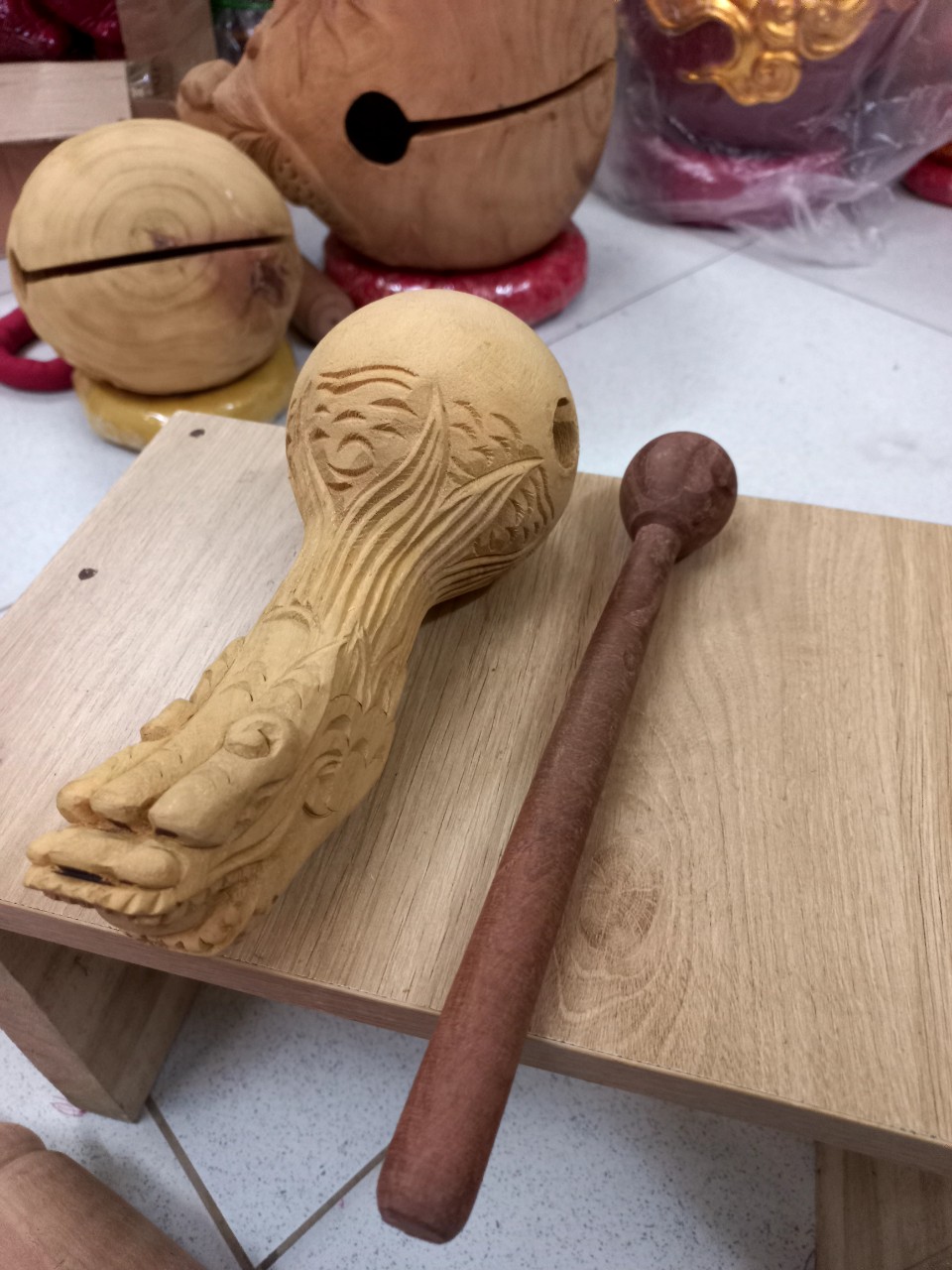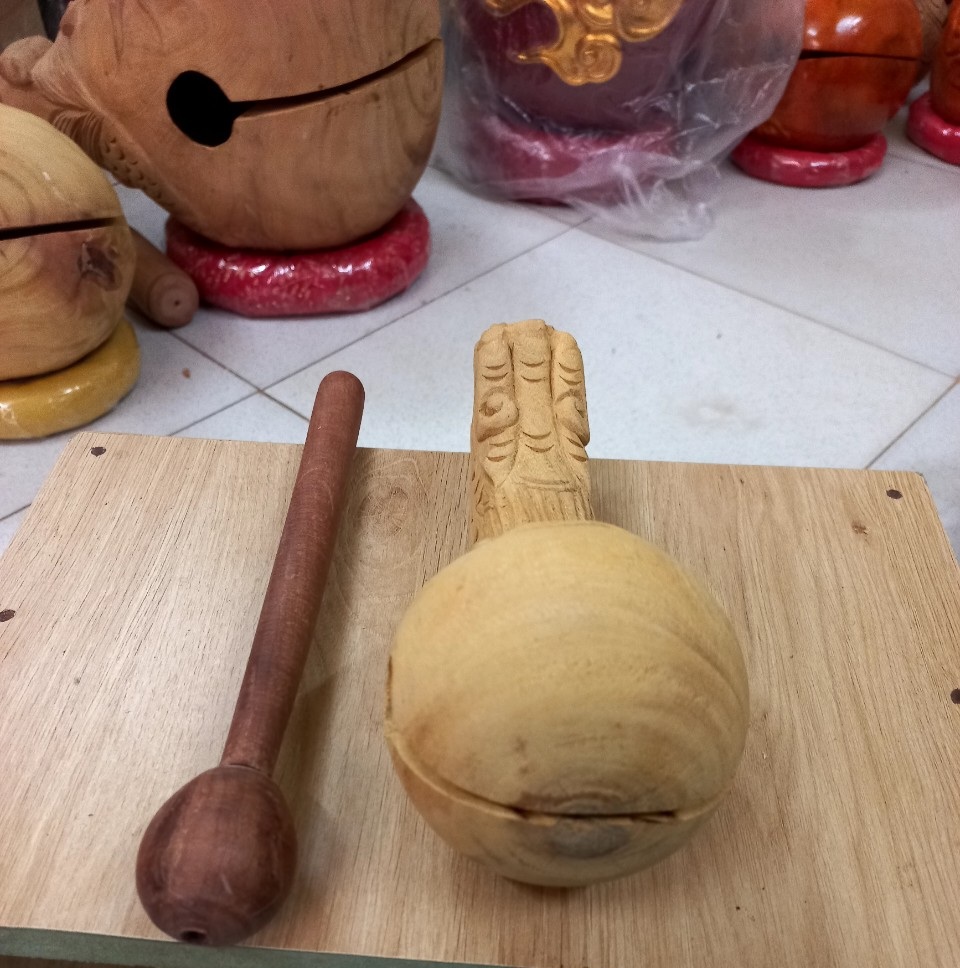 ✨Mõ tụng kinh phật bằng gỗ mít lục lõi không dát ,tay cầm khắc đầu rồng để mộc kt 20×8×6cm