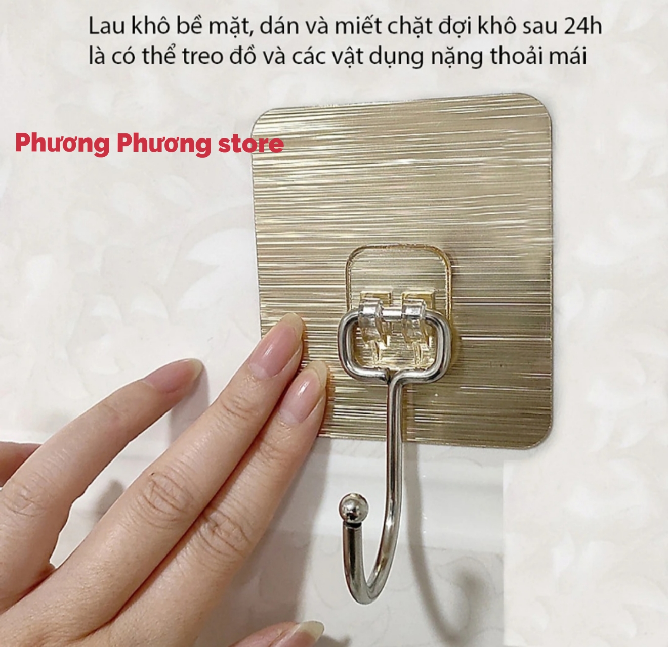 Đóng gói: 01 miếng dán + 01 móc treo inox