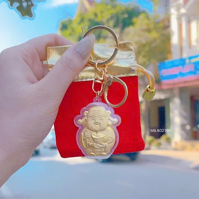 Bộ sản phẩm bao gồm: 1 túi nhung đỏ, 1 móc khóa thần tài