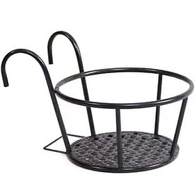 Giỏ treo chậu hoa ban công hình tròn bằng sắt màu đen tiện lợi. . Giá sắt treo ban công làm bằng sắt rỗng, nhẹ vững chắc, sơn đen làm nổi bật thêm vẻ đẹp