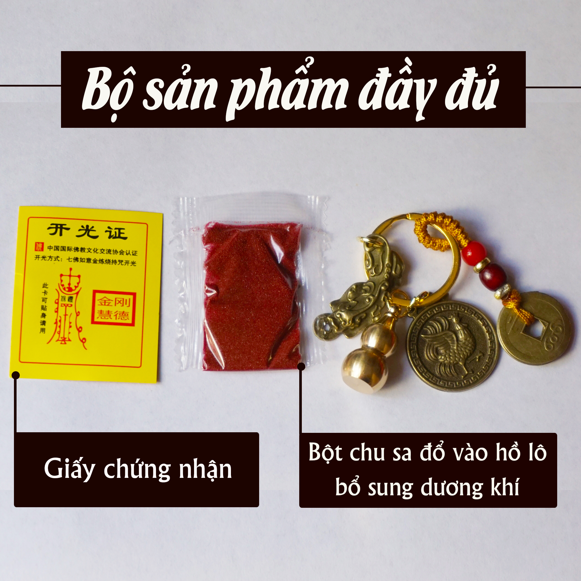 Mua tại TiktokTHÔNG TIN SẢN PHẨM Chất liệu: Đồng Móc khóa tròn làm bằng thép Màu sắc: Đồng Trọng lượng cả bộ: 80gr CÔNG DỤNG Tiền xu Ngũ Đế: Giúp tăng cường vượng khí, phát triển tài lộc Hồ lô phong thủy và bột chu sa: Xua đuổi điều xui xẻo, tăng sức khỏe, hóa giải bệnh tật Tỳ hươu ngậm tiền: Giúp gia chủ phát tài, phát lộc cho việc kinh doanh, buôn bán trôi chảy. MẶT SAU đồng tiền là hình bát quái xua đuổi tà khí