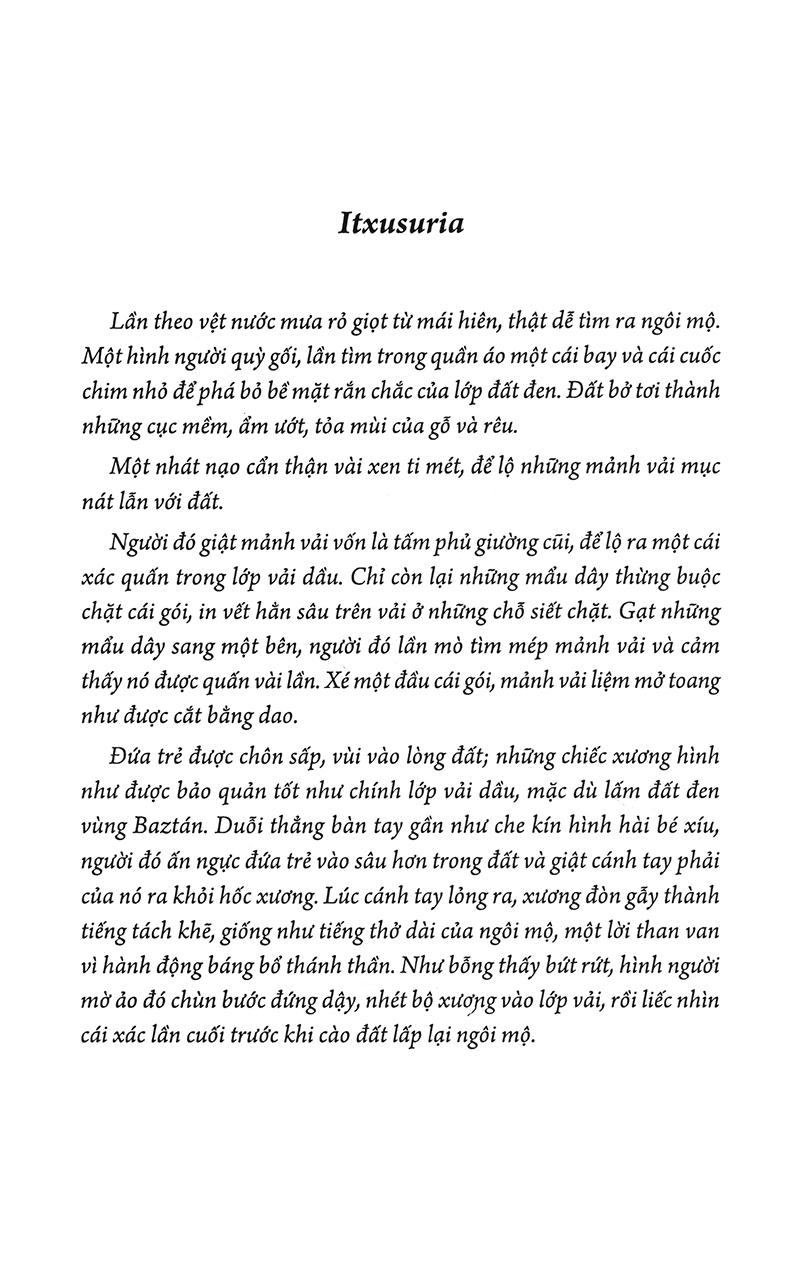 Sau Vệ sĩ vô hình, tập tiếp theo trong bộ ba tiểu thuyết hình sự về thung lũng Baztan của tác giả Dolores Redondo tiếp tục dẫn người đọc đến với những con đường huyền ảo của xứ Basque u tối, mưa mù nhưng lại rất quyến rũ bởi núi non trùng điệp, rừng sâu hun hút và sự hiện diện của những thế lực siêu nhiên.