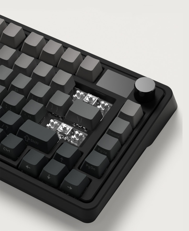 Layout: 75%, (81 keys + 1 Màn hình + 1 Núm xoay)