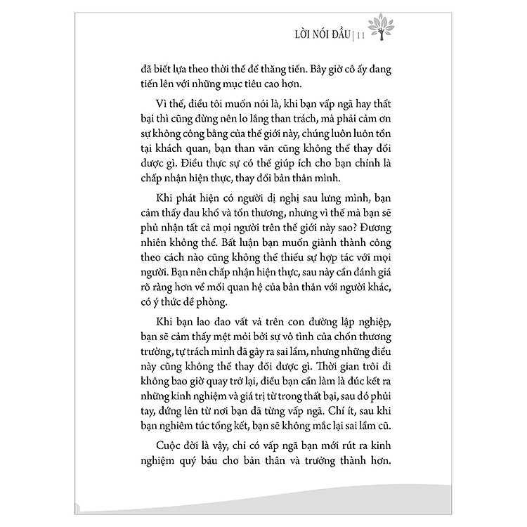 Nhưng mong bạn suy nghĩ kĩ, mỗi khi bạn gặp phải khó khăn hoặc vấp ngã, ngoài việc cảm thấy đau khổ về mặt tinh thần, bạn còn học được điều gì? Tôi dám khẳng định rằng bạn đã có được kinh nghiệm, và khi đã lĩnh hội, bạn sẽ không vấp ngã lại nơi bạn đã từng ngã. Đây chính là sự trưởng thành.