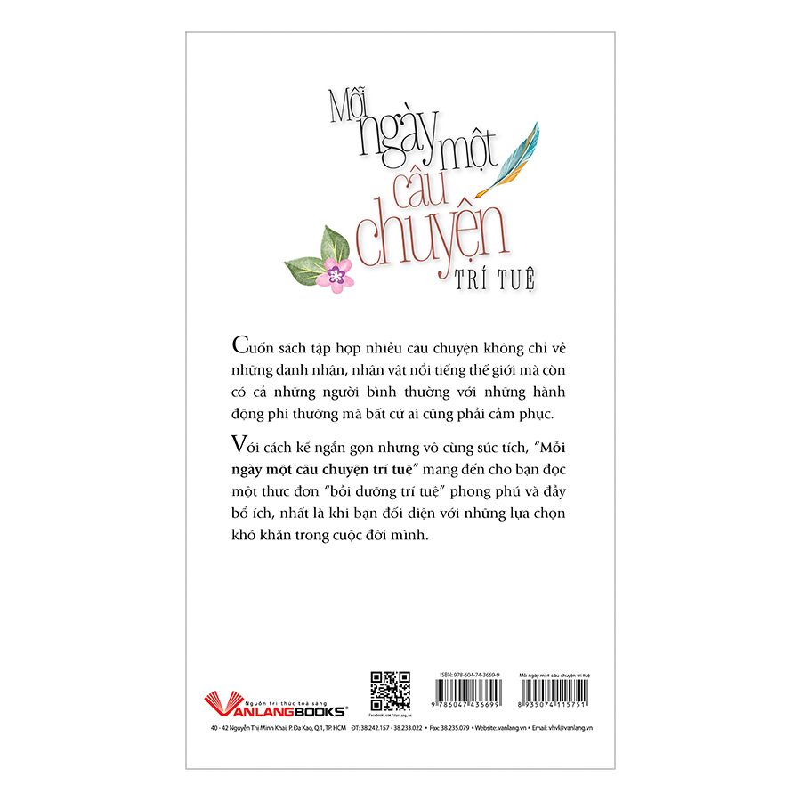 Cuốn sách tập hợp nhiều câu chuyện không chỉ về những danh nhân, nhân vật nổi tiếng thế giới mà còn có cả những người bình thường với những hành động phi thường mà bất cứ ai cũng phải cảm phục. Với cách kể ngắn gọn nhưng vô cùng súc tích, “Mỗi ngày một câu chuyện trí tuệ” mang đến cho bạn đọc một thực đơn “bồi dưỡng trí tuệ” phong phú và đầy bổ ích, nhất là khi bạn đối diện với những lựa chọn khó khăn trong cuộc đời mình .
