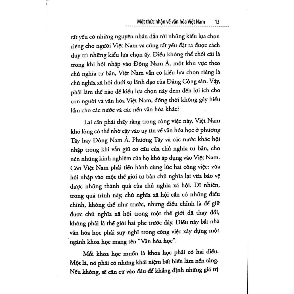 Một cuốn sách có giá trị trong việc "thức nhận" về văn hóa Việt Nam. Tác giả giới thiệu một cách hiểu về văn hóa Việt Nam, phân tích các vấn đề văn hóa ở mặt quan hệ, lý giải tại sao có những cách giải quyết khác nhau trong các nền văn hóa khác nhau ở các vấn đề có tính toàn nhân loại. Một tác phẩm vừa có giá trị lịch sử vừa có giá trị văn hóa, giúp người đọc có cái nhìn bao quát, thấu hiểu đường lối của Đảng, tư tưởng Bác Hồ trong lịch sử-hiện tại, từ đó đổi mới, nâng cao văn hóa ở từng cá nhân phù hợp với hoàn cảnh hội nhập quốc tế hiện nay.