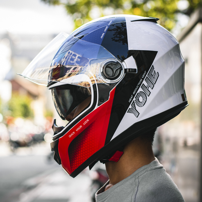 Mũ bảo hiểm Fullface Yohe 970 Hai Lớp Kính có thiết kế năng động, hiện đại, tương đối nhỏ gọn. Đặc biệt màu sắc của mũ bảo hiểm 2 lớp kính fullface Yohe 970 đa dạng, cách phối màu sơn mạnh mẽ, đầy cá tính vừa đảm bảo an toàn vừa mang lại vẻ ngoài chất lừ cho người đội.