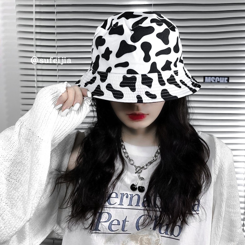 ✨Mũ bucket nam nữ nón tai bèo vành ngắn họa tiết Bò sữa 2 mặt