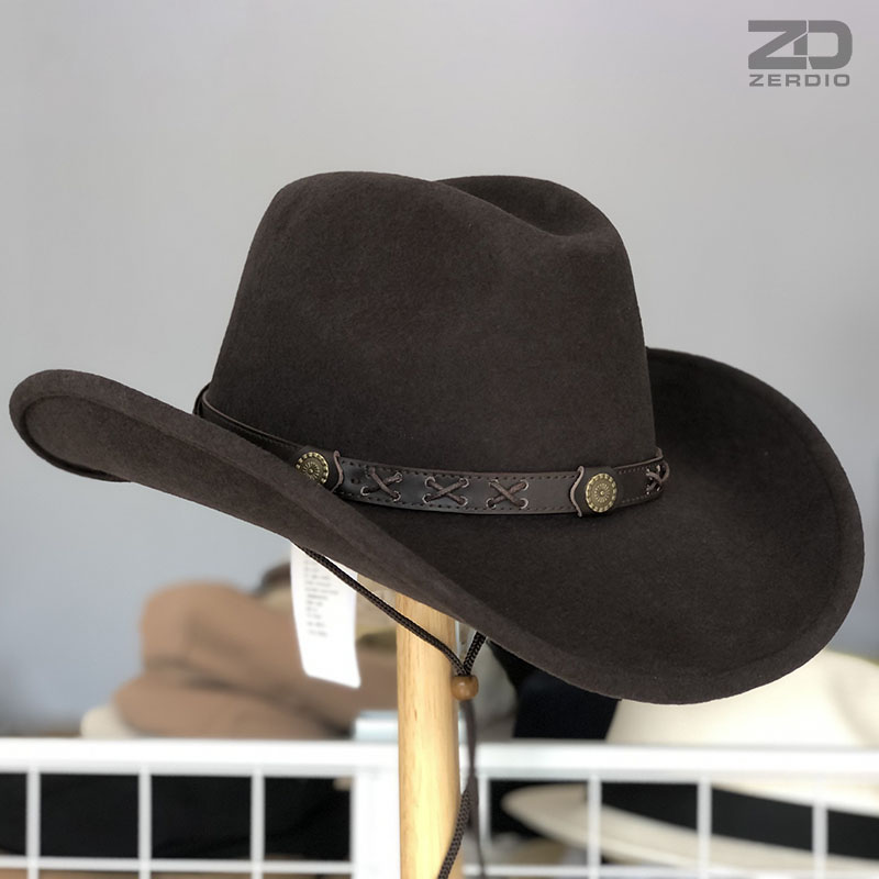 Mũ Cao Bồi Nam Xịn, Chất Liệu Lông Dê Nội Mông Cổ Phong Cách Cao Bồi Miền Viễn Tây MP054 - ZERDIO