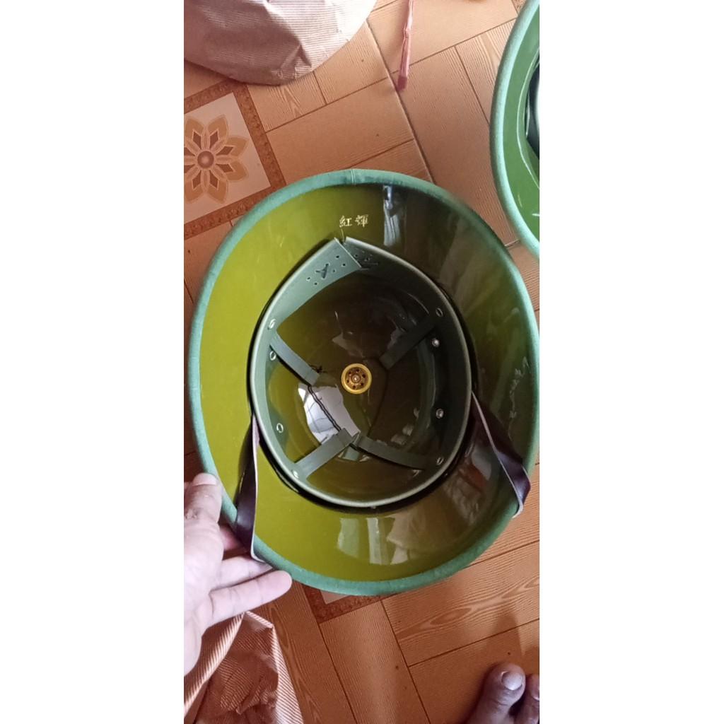 Mũ cối chuẩn 1966 Chịu lực chịu va đập cực tốt chống nước chống phai màu Lòng vàng Bọc Vải chuẩn đẹp Lỗ thông hơi,khuy làm bằng nhôm quai làm bằng da bò Cách điện,