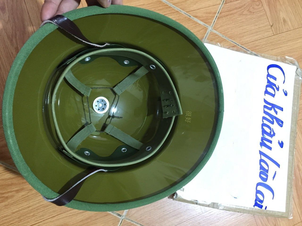 Mũ cối chuẩn 1966 Chịu lực chịu va đập cực tốt chống nước chống phai màu Lòng vàng Bọc Vải chuẩn đẹp Lỗ thông hơi,khuy làm bằng nhôm quai làm bằng da bò Cách điện,