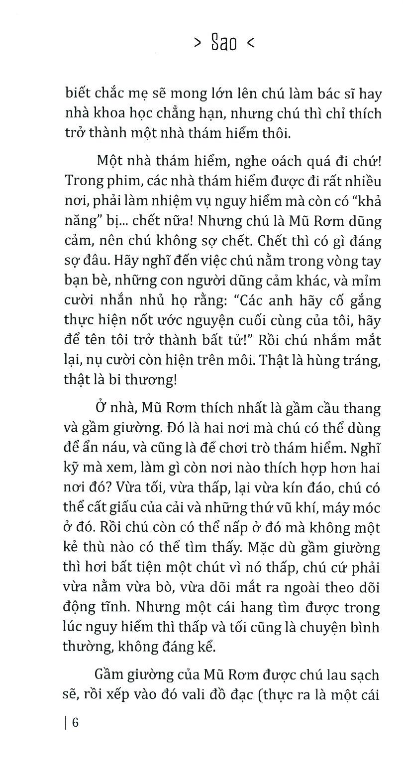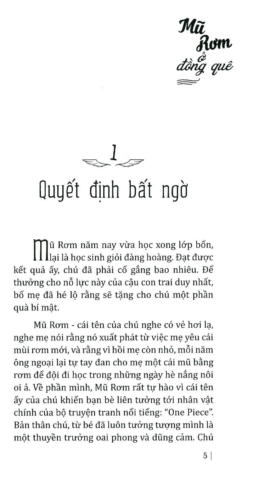 Mũ Rơm - cái tên của chú nghe có vẻ hơi lạ, nghe mẹ nói rằng nó xuất phát từ việc mẹ yêu cái mùi rơm mới, và rằng vì hồi mẹ còn nhỏ, mỗi năm ông ngoại lại tự tay đan cho mẹ một cái mũ bằng rơm để đội đi học trong những ngày hè nắng nôi oi ả. Về phần mình, Mũ Rơm rất tự hào vì cái tên ấy của chú khiến bạn bè liên tưởng tới nhân vật chính của bộ truyện tranh nổi tiếng: “One Piece”. Bản thân chú, từ bé đã luôn tưởng tượng mình là một thuyền trưởng oai phong và dũng cảm. Chú biết chắc mẹ sẽ mong lớn lên chú làm bác sĩ hay nhà khoa học chẳng hạn, nhưng chú thì chỉ thích trở thành một nhà thám hiểm thôi