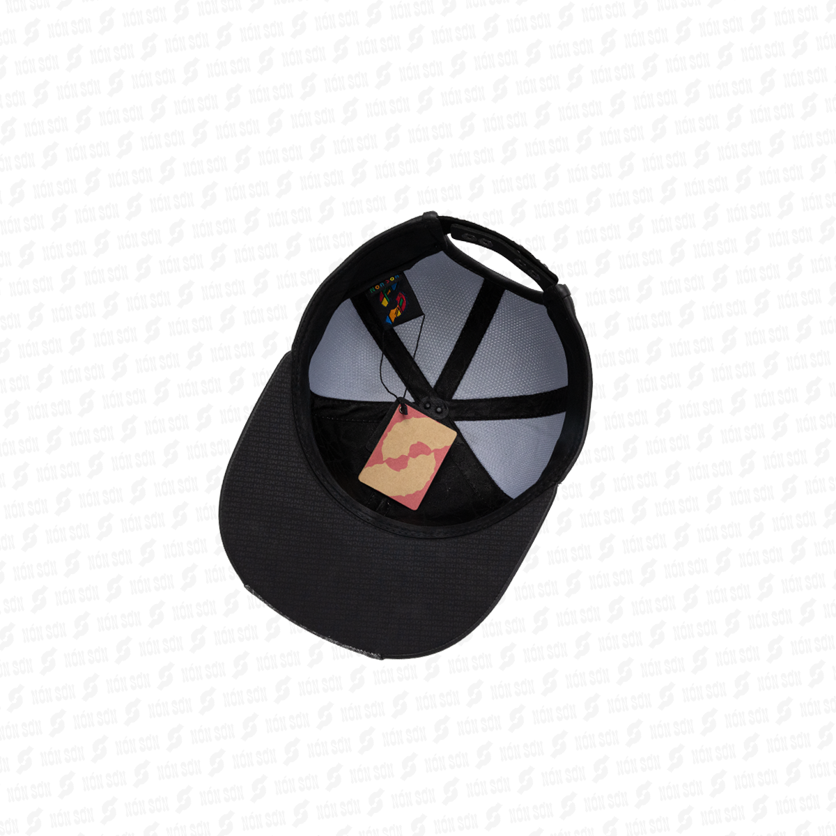 - Sử dụng kẹp phơi vào đai bên trong nón (vị trí giữa lưỡi trai), sao cho lưỡi nón hướng phía trên và dây đuôi hướng phía dưới.