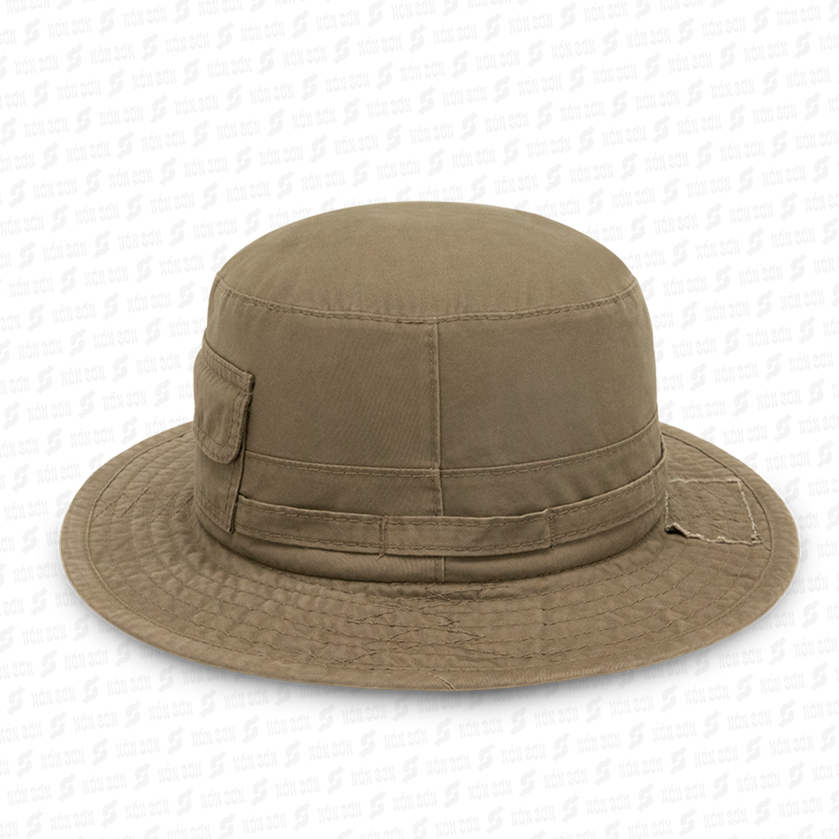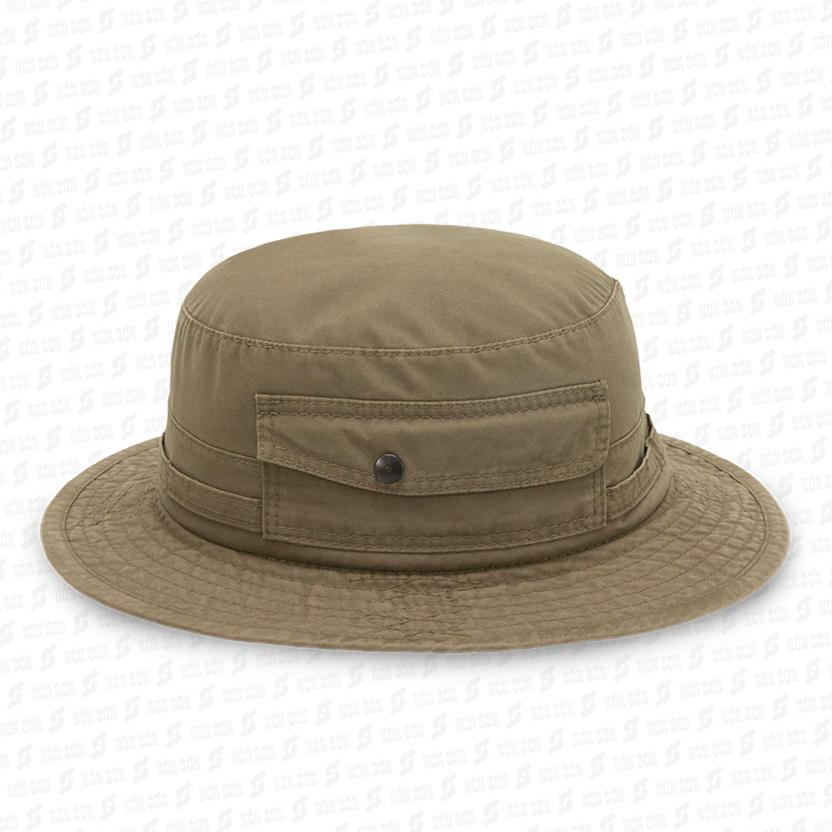 Vải Kaki dày dặn nhưng không nóng vì là 100%cotton. Có dây đeo không lo gió bay. Nút bấm kim loại 2 bên vành nón để bẻ lên cho ngầu luôn. Shop nhận thêu logo