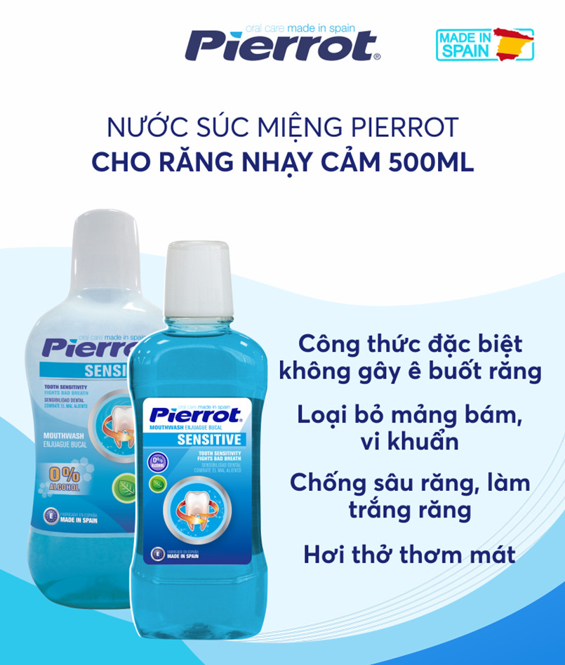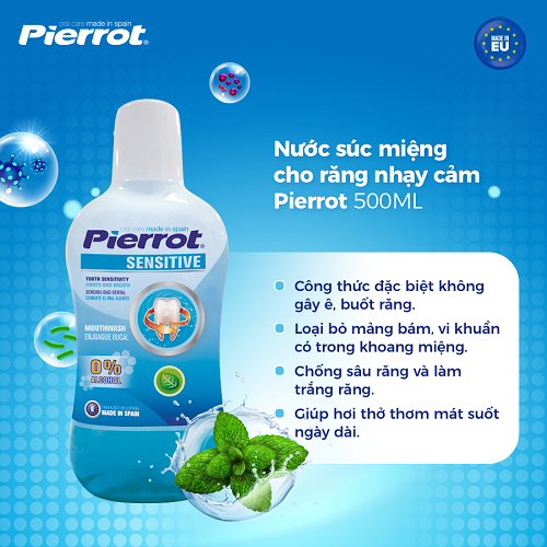Nước súc miệng Pierrot là sản phẩm chăm sóc răng miệng với các tác dụng như sát khuẩn, sạch họng, làm sạch mảng bám, giúp hơi thở thơm mát, đặc biệt chống sâu răng. Pierrot