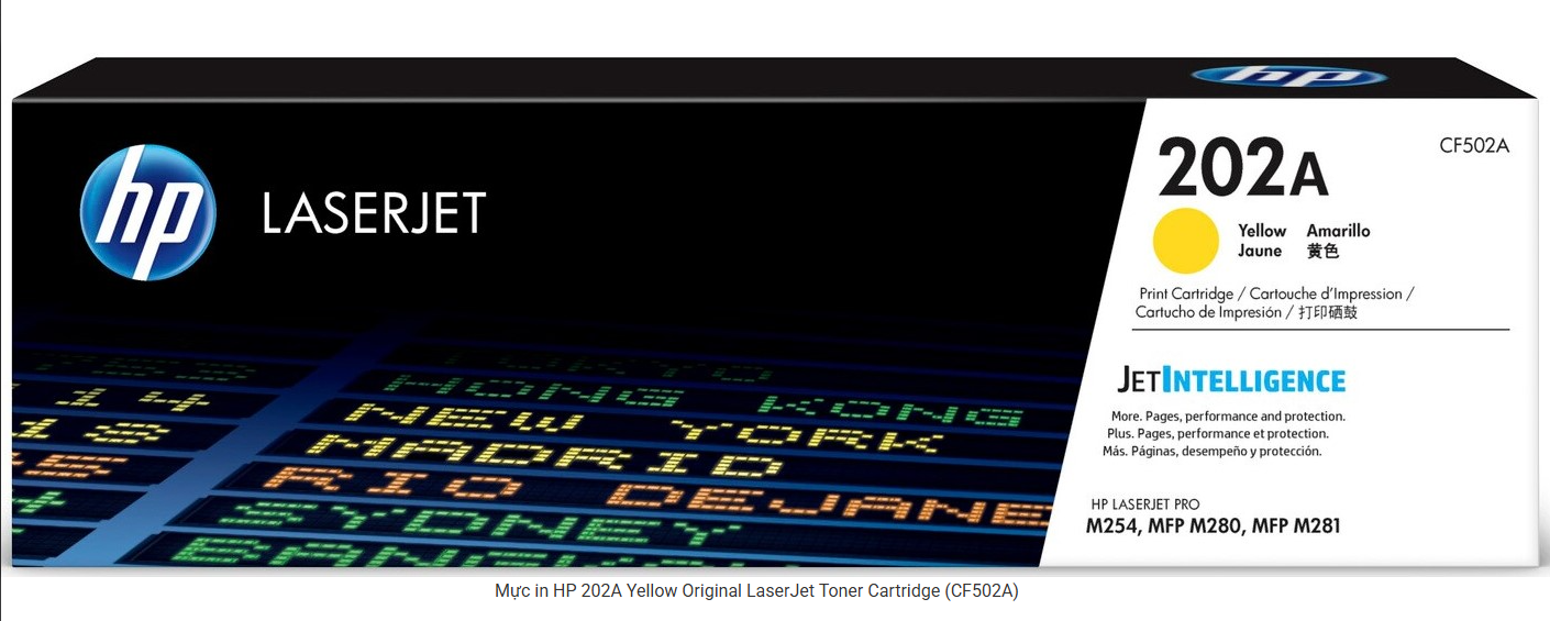 Thông tin nhanh sản phẩm - Mã mực: HP 202A Yellow Original LaserJet Toner Cartridge (CF502A) - Loại mực: Laser màu vàng - Dung lượng: 1.300 trang độ phủ 5% - Máy dùng: HP Color LaserJet Pro MFP