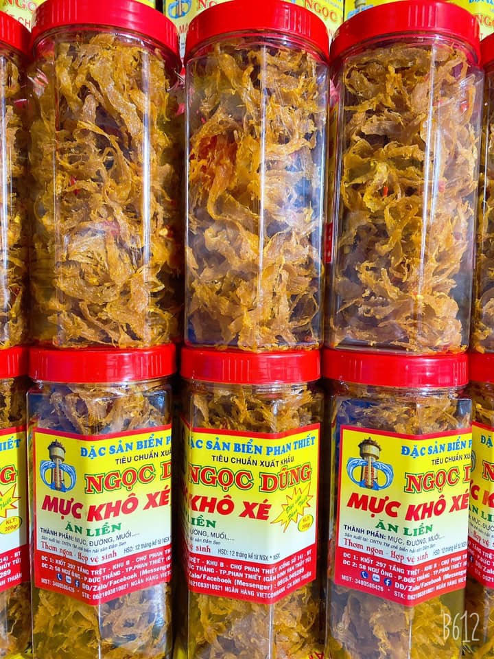 - Mực khô xé sợi đã chế biến ăn liền ngon ơi là ngon của shop Đặc Sản Biển Phan Thiết NGỌC DŨNG được bán trên các sàn thương mại điện tử; Chợ Phan Thiết và các điểm dừng chân khi khách hàng đi du lịch Phan Thiết Mũi Né mua để ăn vật và mua làm quà biếu cho người thân, bạn bè, đồng nghiệ