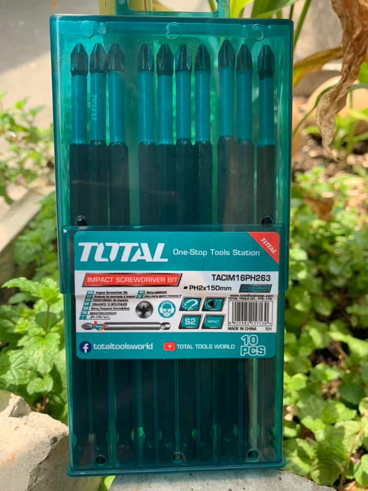 -Mũi bắt vít PH2x150mm. 10 cái / bộ. Đầu vít được tối ưu hóa lớn hơn giúp giảm gãy đầu, chất liệu bằng thép công nghiệp S2.