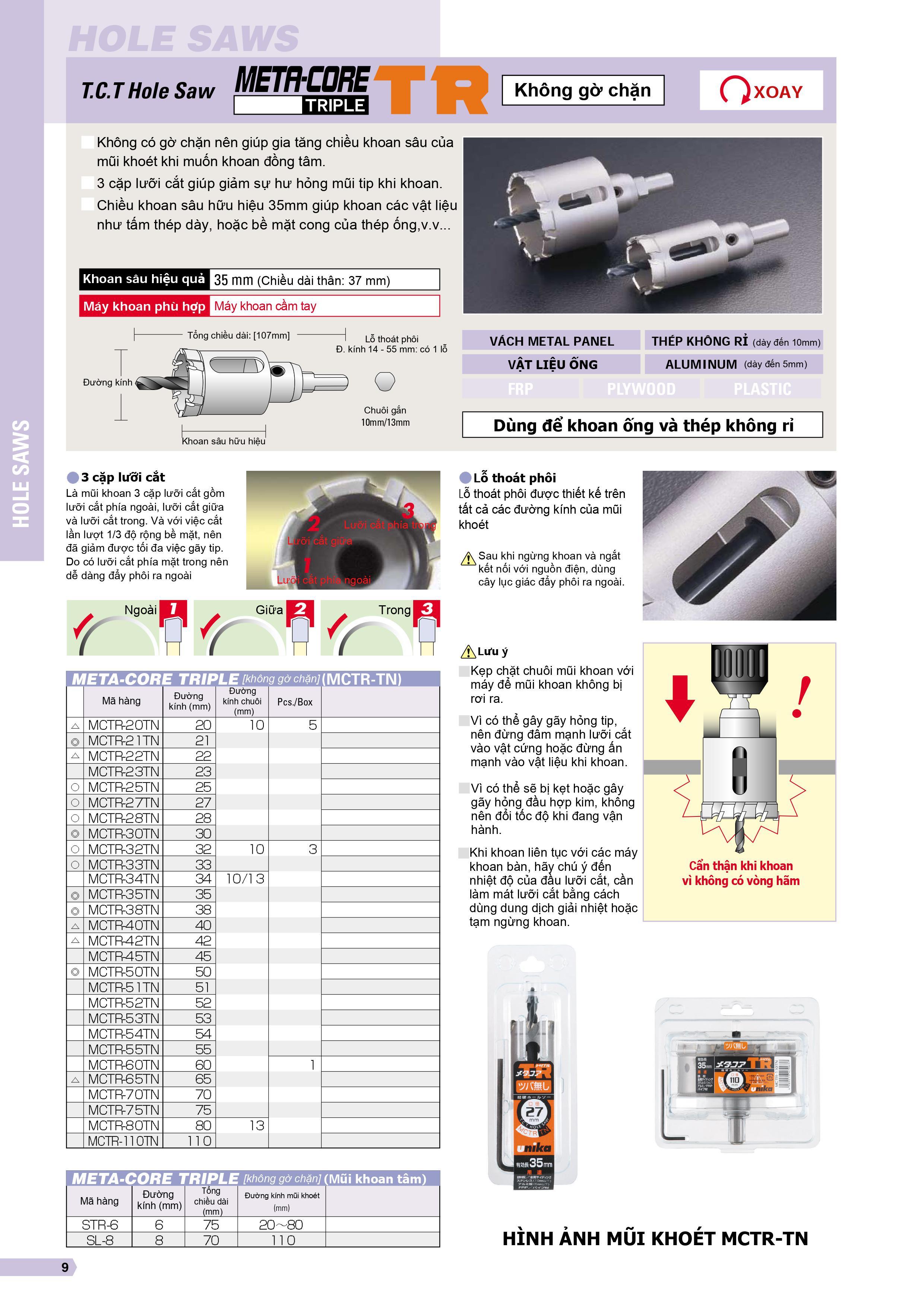 SỬ DỤNG: Vách Metal Panel, Inox (dày đến 10mm), Vật liệu ống, Nhôm (dày đến 5mm), FRP, PLYWOOD, PLASTIC. Dùng để khoan ống và thép không gỉ.
