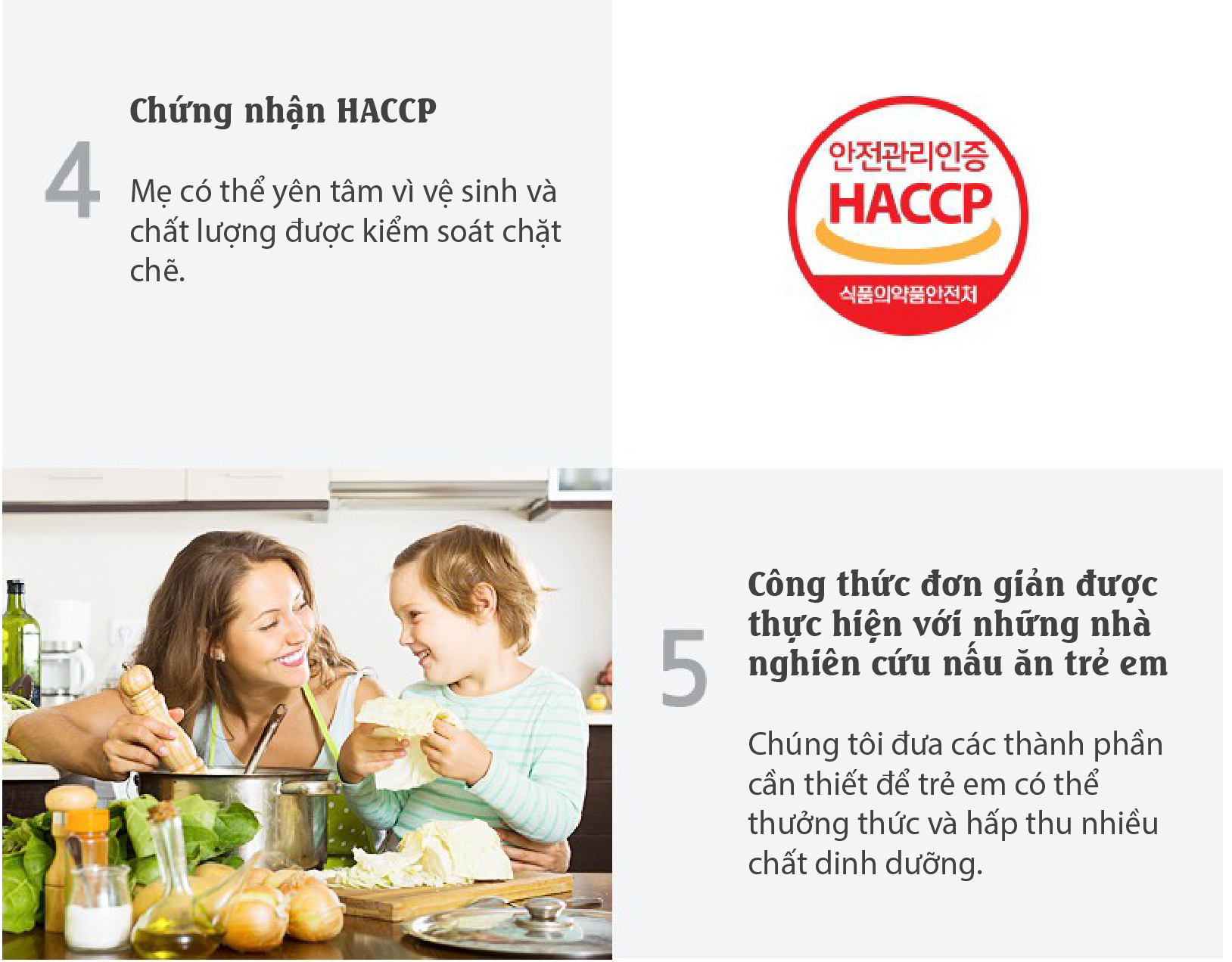 - Chứng nhận HACCP: Mẹ có thể yên tâm vì vệ sinh và chất lượng được kiểm soát chặt chẽ.