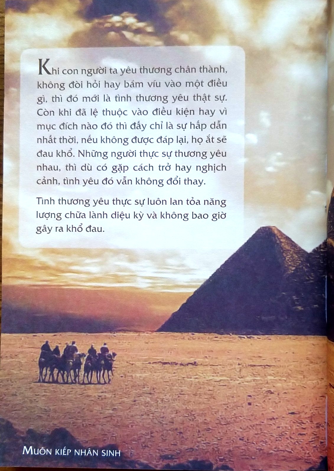 “Muôn kiếp nhân sinh” cung cấp cho bạn đọc kiến thức mới mẻ, vô tận của nhân loại lần đầu được hé mở, cùng những phân tích uyên bác, tiên đoán bất ngờ về hiện tại và tương lai thế giới của những bậc hiền triết thông thái. Đời người tưởng chừng rất dài nhưng lại trôi qua rất nhanh, sinh vượng suy tử, mong manh như sóng nước. Luật nhân quả cực kỳ chính xác, chi tiết, phức tạp được thu thập qua nhiều đời, nhiều kiếp, liên hệ tương hỗ đan xen chặt chữ lẫn nhau, không ai có thể tính được tích đức này có thể trừ được nghiệp kia không, không ai có thể biết được khi nào nhân sẽ trổ quả. Nhưng, một khi đã gây ra nhân thì chắc chắn sẽ gặt quả - luật Nhân quả của vũ trụ trước giờ không bao giờ sai.