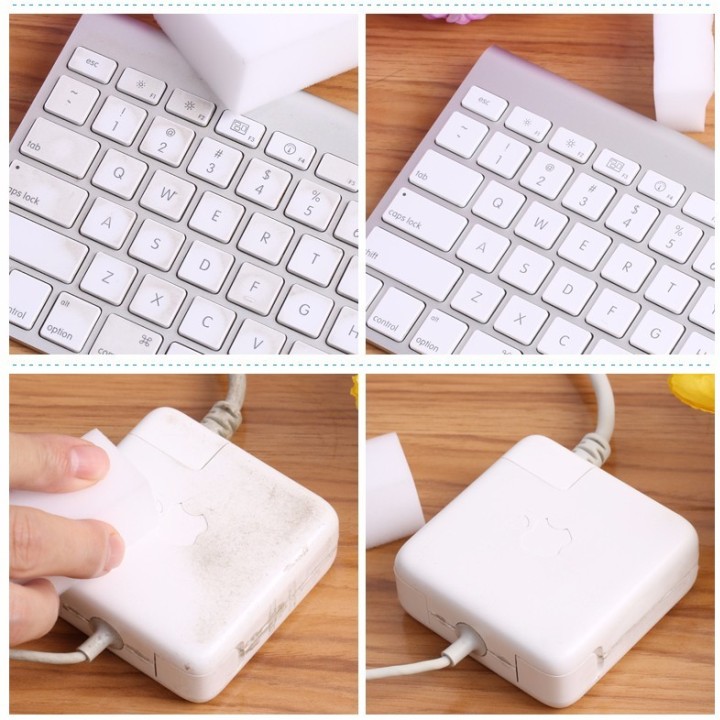 - Lau chùi mọi nơi, mọi vật dụng. Thông số kỹ thuật Kích thước: 10cm x 6cm x 2cm Độ nén cao gấp đôi loại thông thường, bền hơn, dai hơn, sử dụng được lâu hơn Thành phần: bọt melamine Màu sắc: Trắng Công dụng