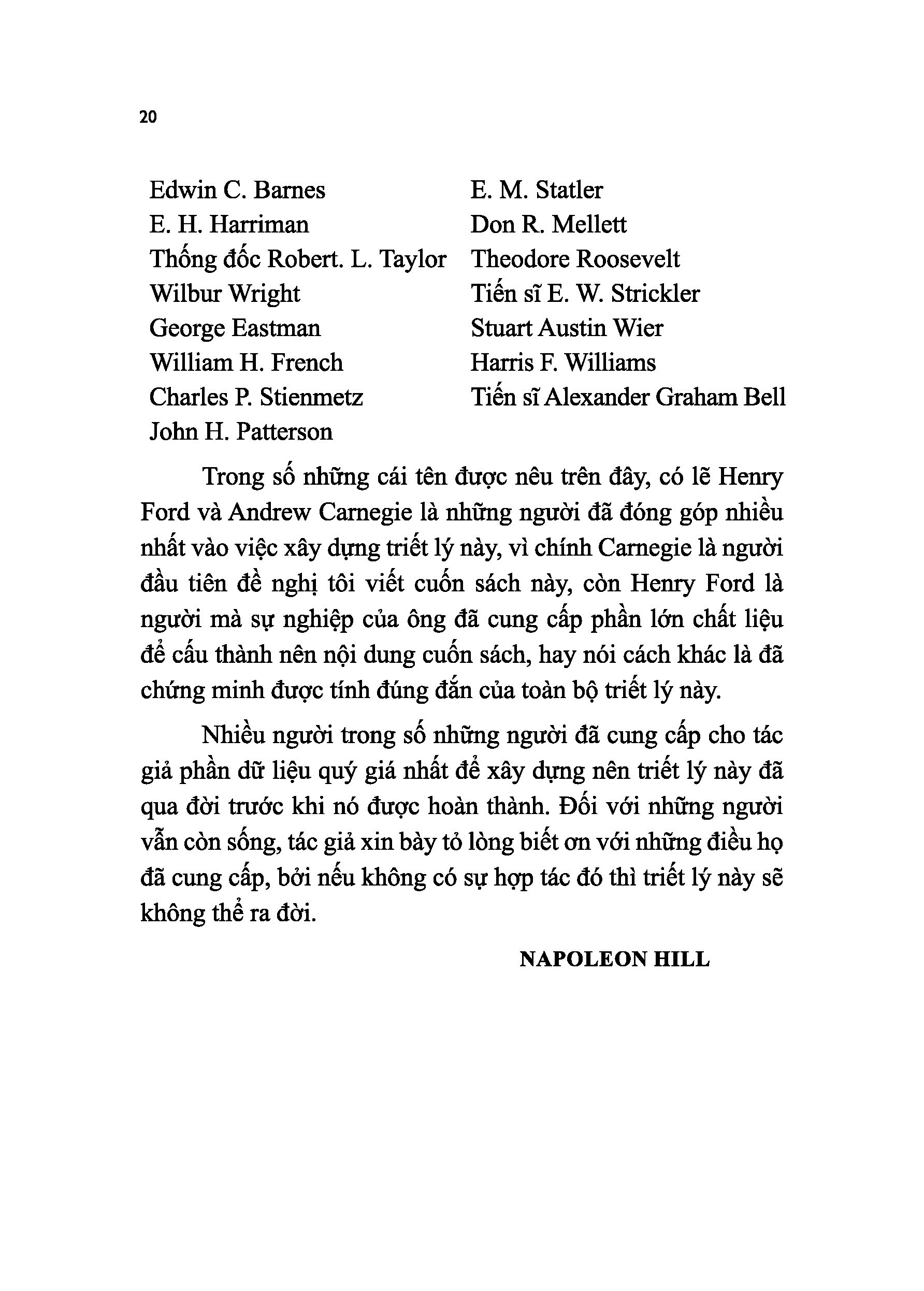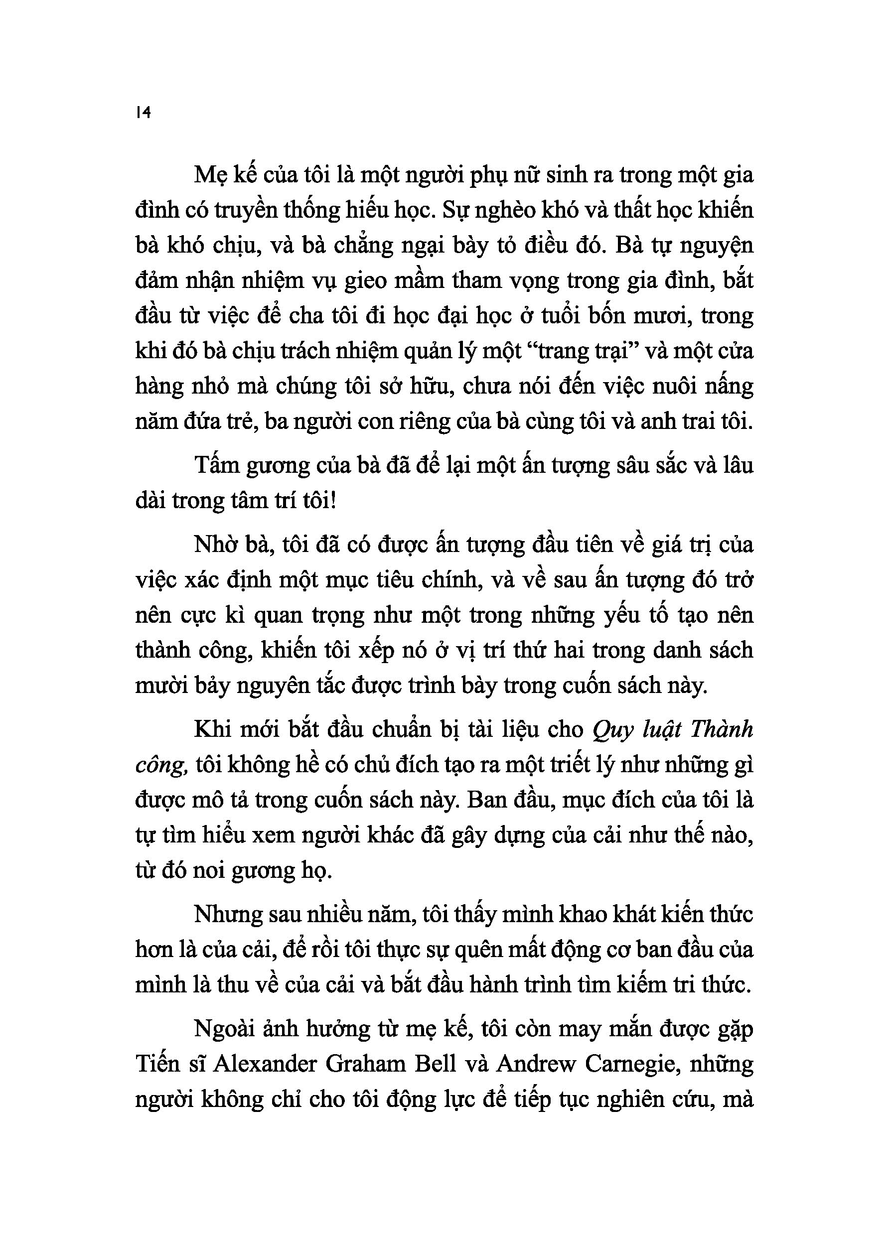 Có cả một kho báu tri thức được khai quật trong cuốn sách này. Napoleon Hill đưa ra một lộ trình ngắn gọn, chi tiết để đi lên nấc thang dẫn tới thành công, một bước tiến phụ thuộc vào việc tổ chức các quy trình tư duy của một người. Có lẽ đọc cuốn sách này, bạn sẽ tìm thấy một trong những thứ quan trọng để xoay chuyển cuộc đời mình sang hướng khác – hướng của một cuộc đời thành công, ví như: xác lập mục tiêu, bồi dưỡng sự tự tin, hình thành thói quen tiết kiệm, tạo dựng tính chủ động, tự chủ, phát huy khả năng tưởng tượng, giữ lửa nhiệt tình, giữ vững sự tập trung, xây dựng khả năng hợp tác, rút ra kinh nghiệm sau thất bại, khoan dung với mình và mọi ngườ