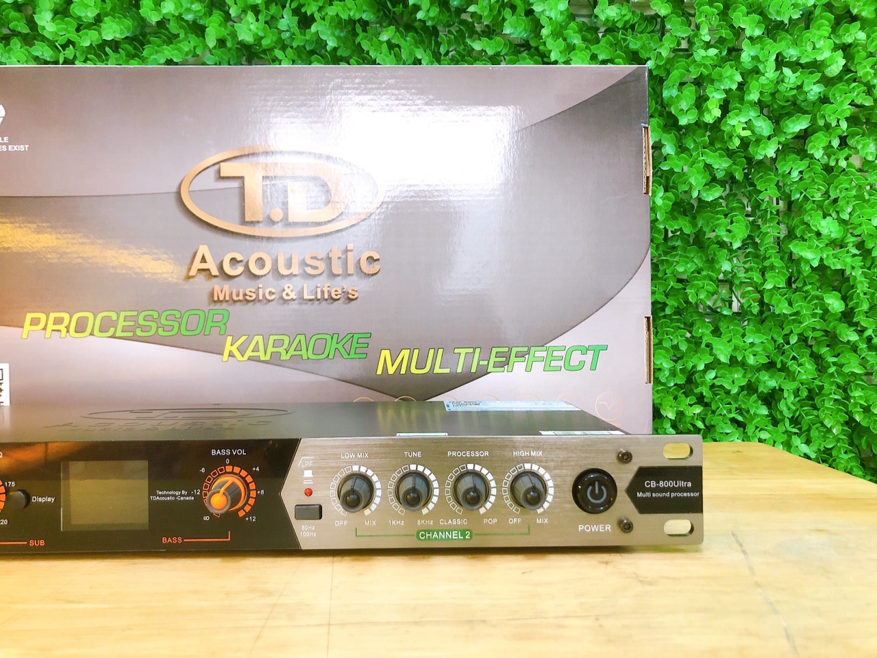 - Chíp âm thanh USB giúp âm thanh sáng, bass mềm mại nhất mà khoogn nâng tiếng nào sánh được Nâng tiếng TD Acoustic CB-800 Ultra thiết bị không thế thiếu dàn karaoke Nâng tiếng TD Acoustic CB-800 Ultra xử lý âm thanh chuyên nghiệp Tem cào mã giúp phân biệt hàng chính hãng và hàng trung quốc Đầy đủ các chức nâng tăng bass, trelb, cắt sup chuyên nghiệ Các nút chức năng