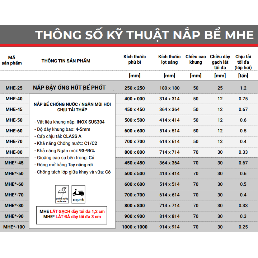 ✨Nắp bể ngầm chống nước ngăn mùi inox ZAVAK MHE*-45 / KT 45x45cm, lát gạch 3cm, tải 600kg