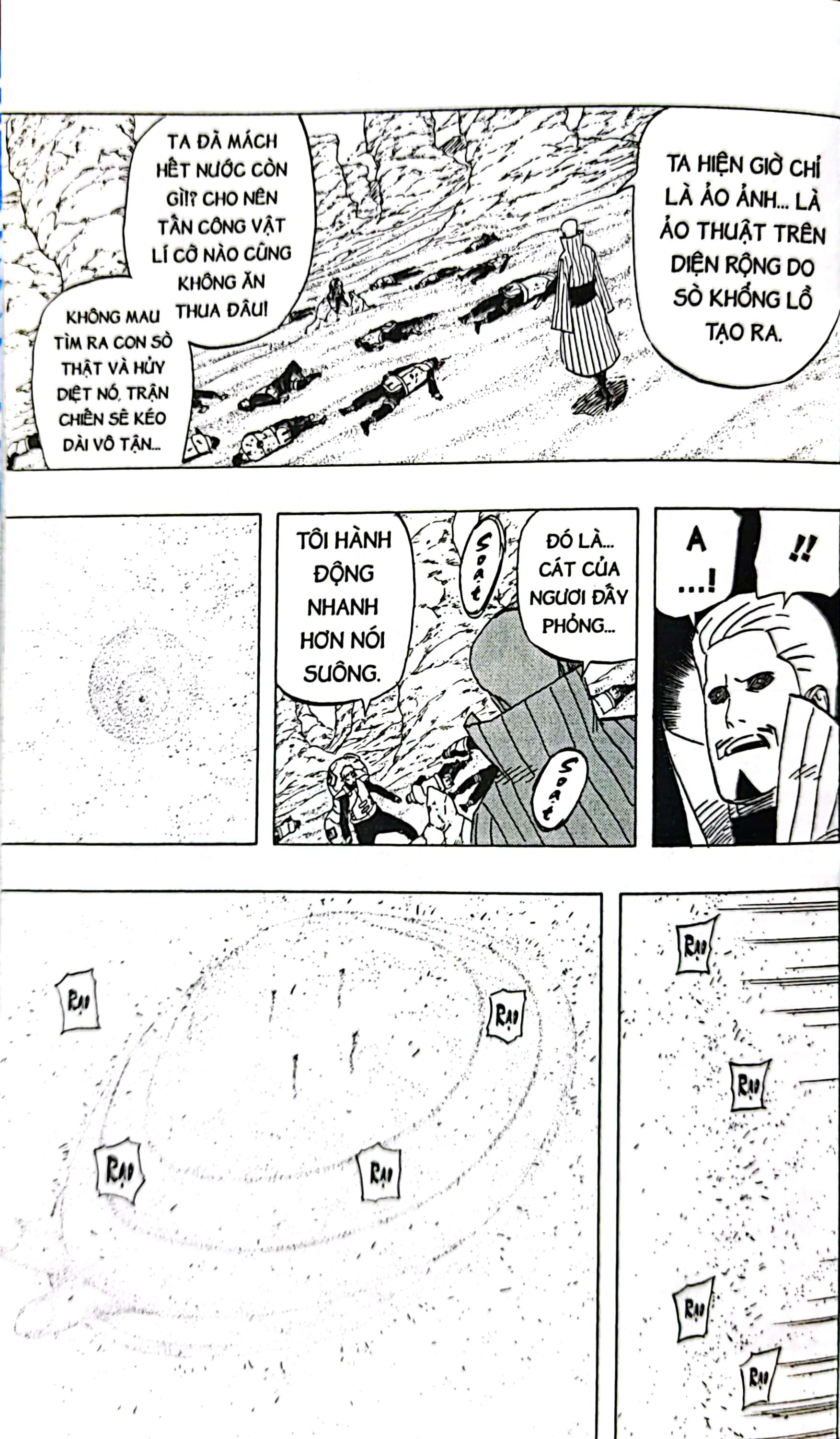 Phòng ngự tuyệt đối của Gaara thất thủ trước Mizukage tiền nhiệm. Cậu liên kết với Onoki để phản công, nhưng chật vật trước nhẫn thuật “Chưng Nguy Bộc Uy” của Mizukage… Đối sách của