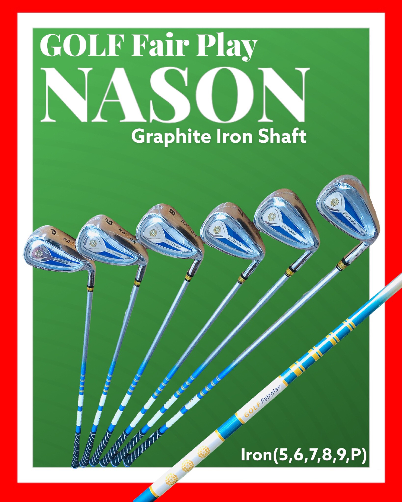 - Bộ gậy golf 6 Gậy sắt 5,6,7,8,9,P(28-32-36-40-44-48) NASON GF01 R Flex Graphite Shaft.
