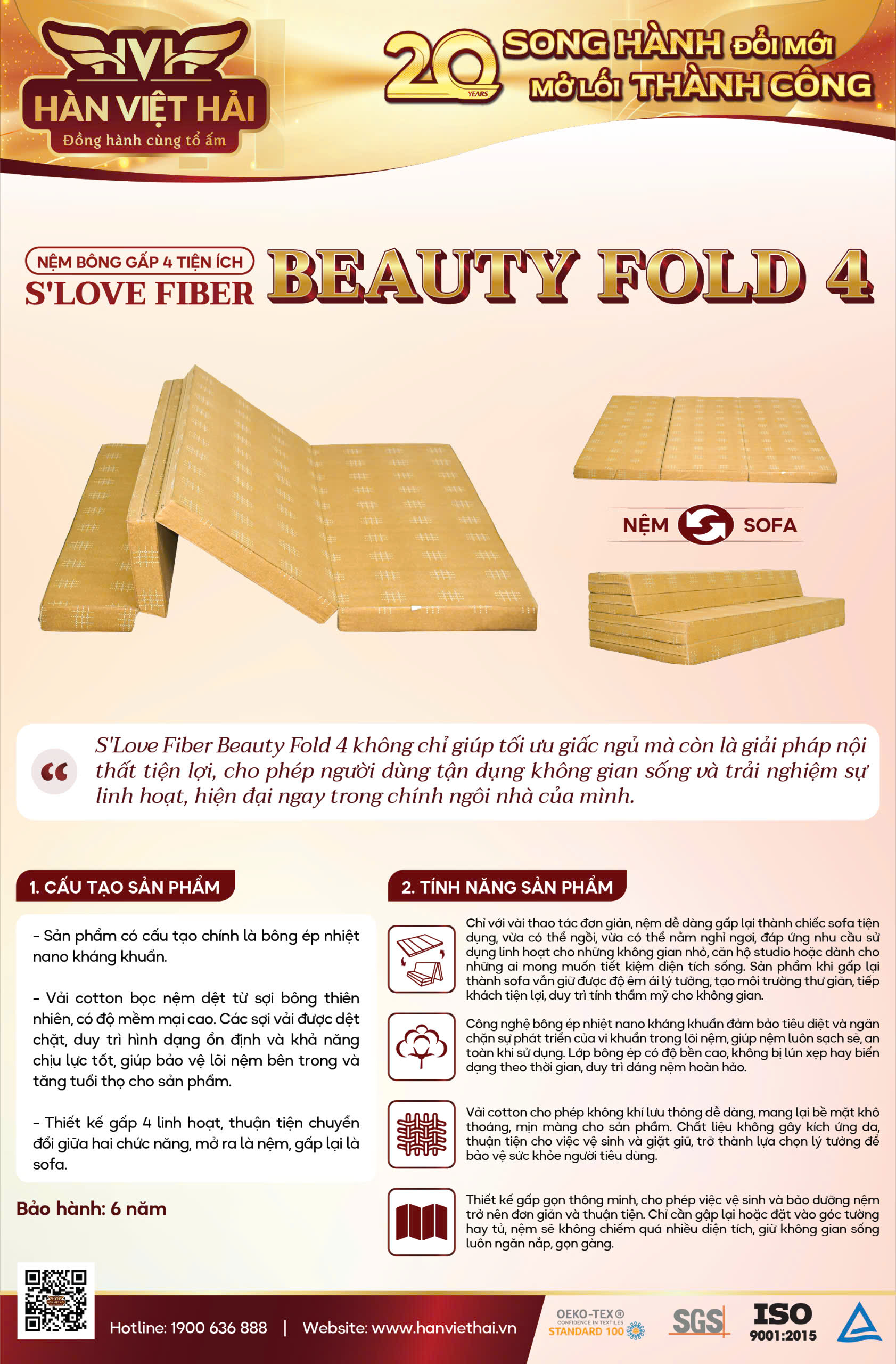 ✨Nệm Bông Gấp 4 Tiện Ích , Sopha S'love Fiber Beauty Fold 4 Vải Cotton
