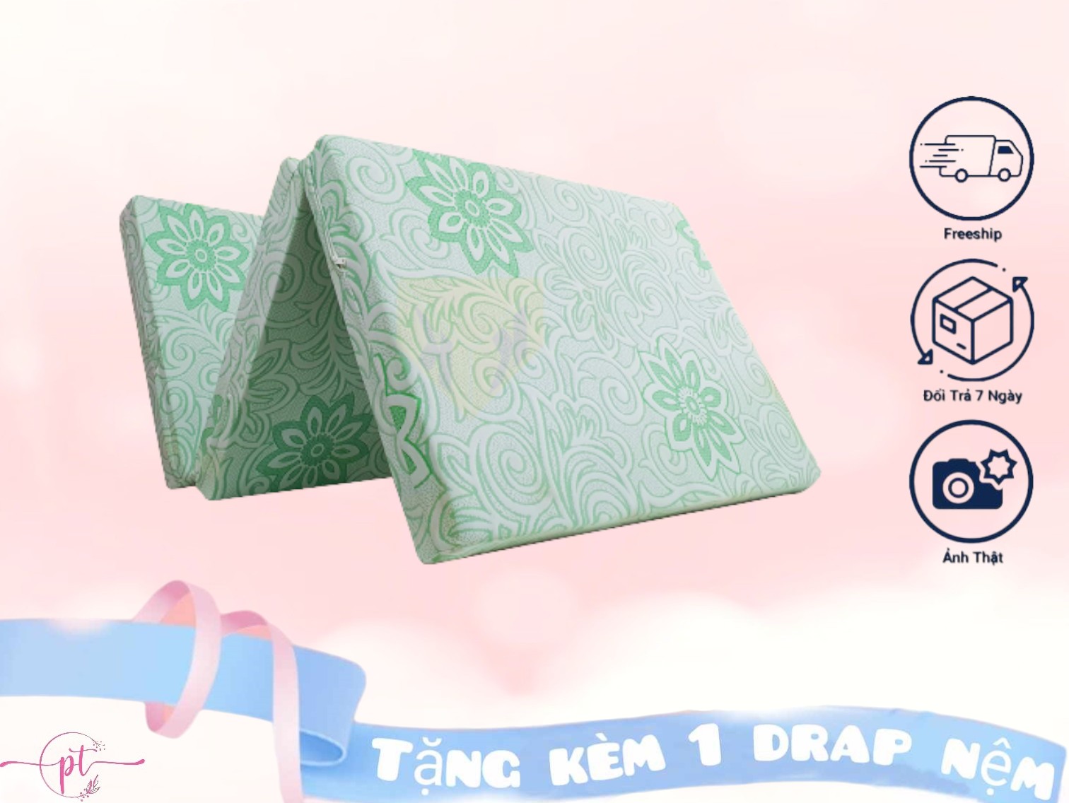 - Đệm có thiết kế gấp 3 tiện dụng, phù hợp với các không gian nhà hay phòng chật hẹp hiện nay giúp thoải mái cất giữ khi không sử dụng và di chuyển dễ