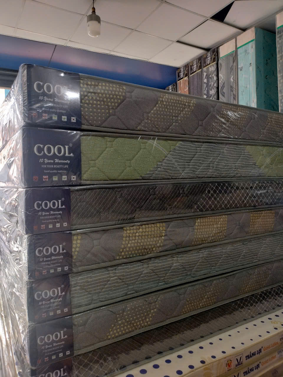 Nệm bông thẳng Hàn Việt Hải Korea có chần vải xốp gấm Mô tả: - Lỗi nệm sử dụng các sợi bông polyester được xử lý kháng khuẩn và ép nhiệt thành khối hoàn thiện.